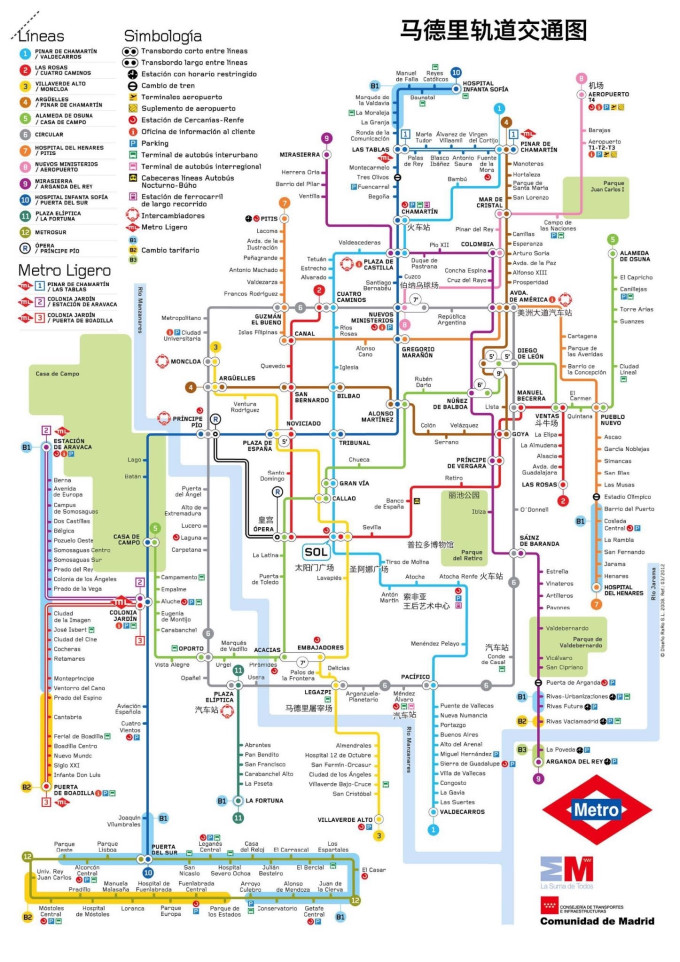 总之整个过程非常缓慢与混乱,因为很多人都不会买急的一身汗,后面排队的人也急的一身汗,等我们买好票半个小时已经过去了。。。但马德里和巴塞罗那的地铁四通八达还是很方便的,换乘指示也很明确,马德里的地铁在指示方向时基本靠写首尾站站名,而并非下一站,所以要提前看好,巴塞罗那地铁比较人性化,大部分都会显示下一站的站名。在坐地铁时,上车和下车记得要搬动车门上的把手或按钮,车门不会自动打开。2个人坐地铁时,一个人先将车票插入入口再拔出进入,再将车票递给第二个人就行,出站不用刷票,直接冲出去就好了。在地铁站注意保护财务, 不过坐过一次就会感受到地铁的方便快捷,最重要的是还可以节省体力。