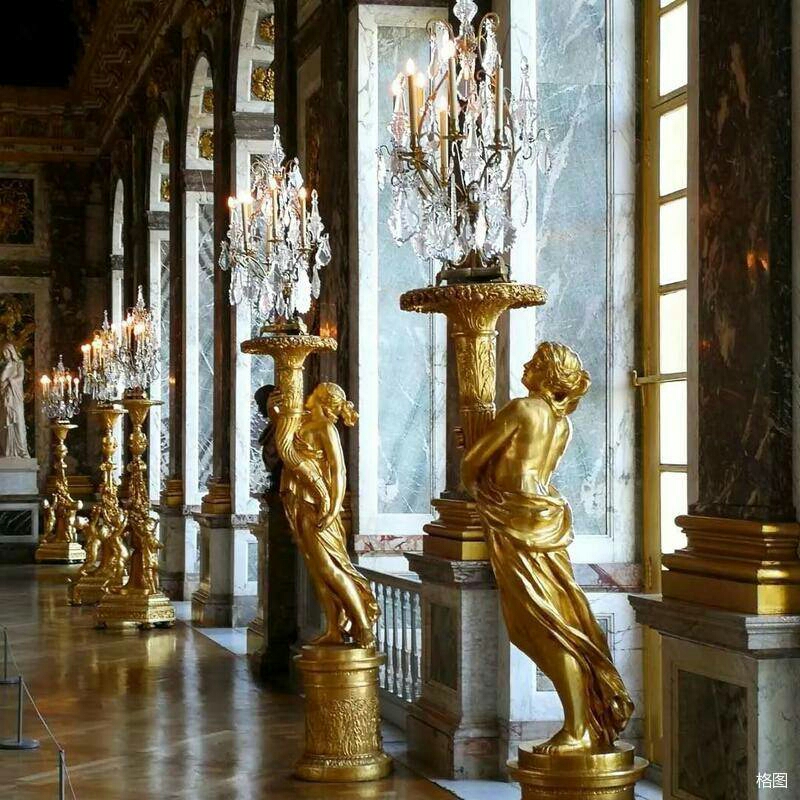 凡尔赛宫的外观,庄重、宏伟,内部陈设和装修,富丽堂皇,到处是雕塑和油画,极富艺术魅力。
