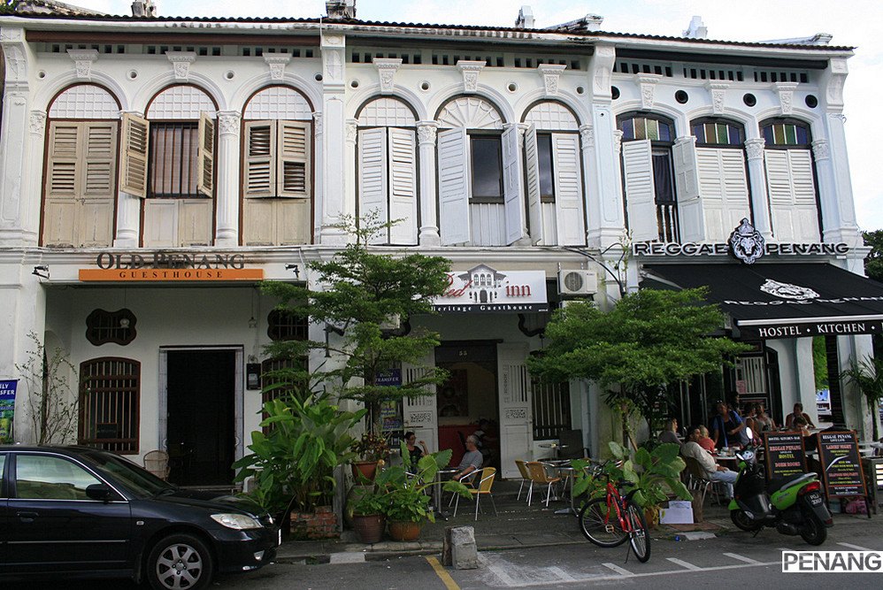 中间的就是Red Inn. 房间很少,转了一圈发现房间门牌号只到13,房间很少看来必须得提前预订 ,还有简单免费的早餐提供,很不错,左边的Old Penang也不错,右边的是个酒吧,晚上很热闹,坐在门口喝点儿小酒吹着风很享受,全是背包客,境外人居多,