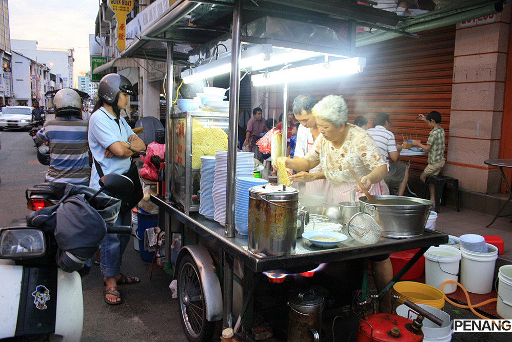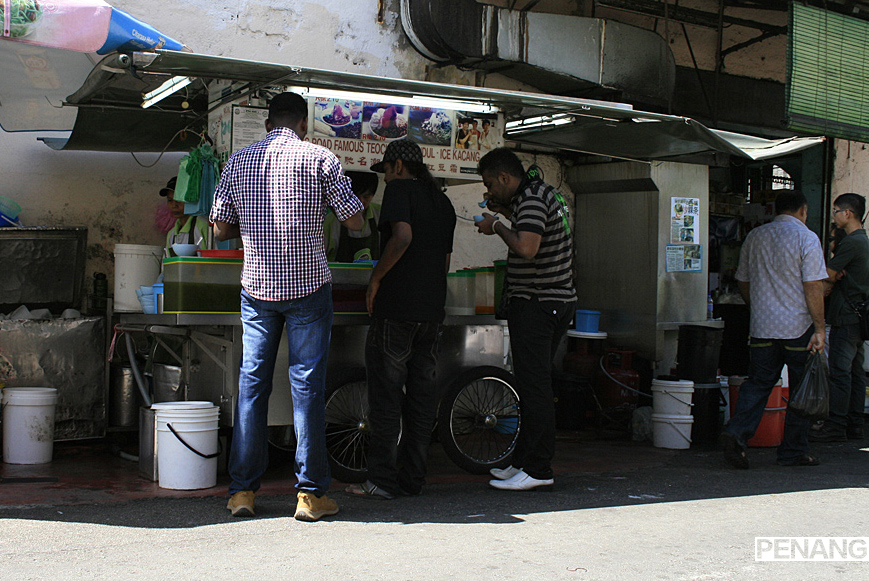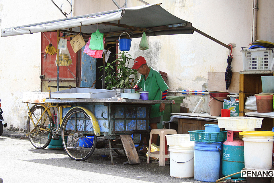 都知道槟城以小吃著称,但要想吃全的话就要从早吃到晚了,因为有的只在白天营业,有的只在晚上营业,自从飞机一降落在槟城的机场,就开始憧憬着红豆冰的味道,我以为会满大街都是,其实并不是,还好做了一个华人老大爷骑的车,性质相当于北京胡同游的三轮车吧,带着我们几乎转遍了老城中的景点后带我们吃到了正宗的红豆冰,在景贵街。当地人好像吃煎蕊的比吃红豆冰多,红豆冰多是游客在吃,街口有两家,一家感觉游客居多,一家感觉当地人居多,红色碗的红豆冰就是当地人多的那家。