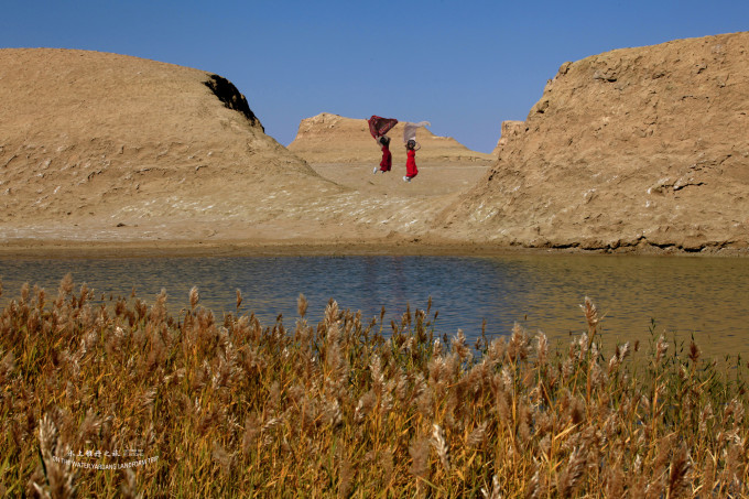 水中的雅丹和着随风飘动的芦苇,显得是那么自然。