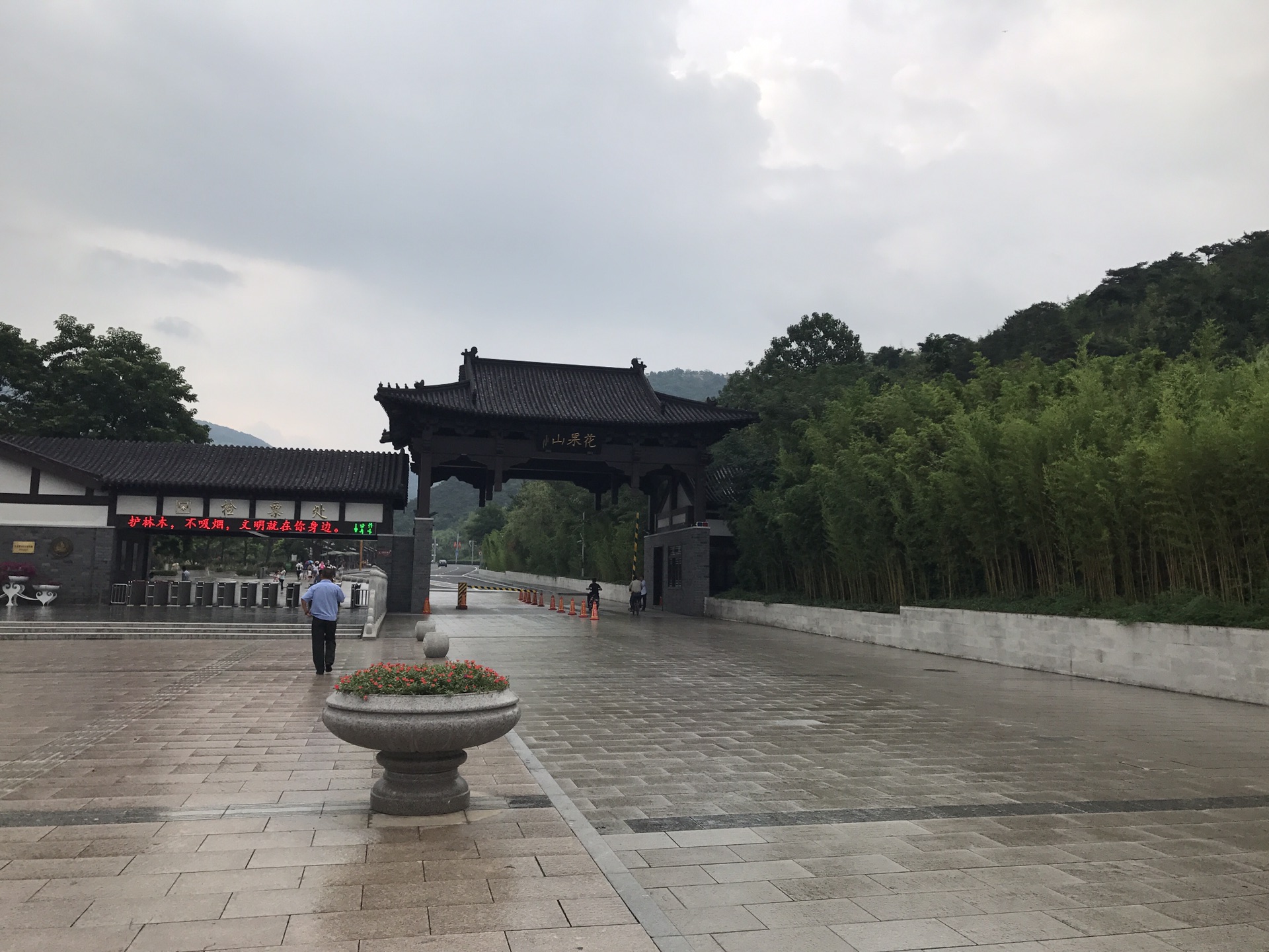 这是第二天一大早的行程,我们因为供应商有熟人还是怎么地,反正就给检票的人赛了两包中华烟,就这么放我们进去了。花果山大门。