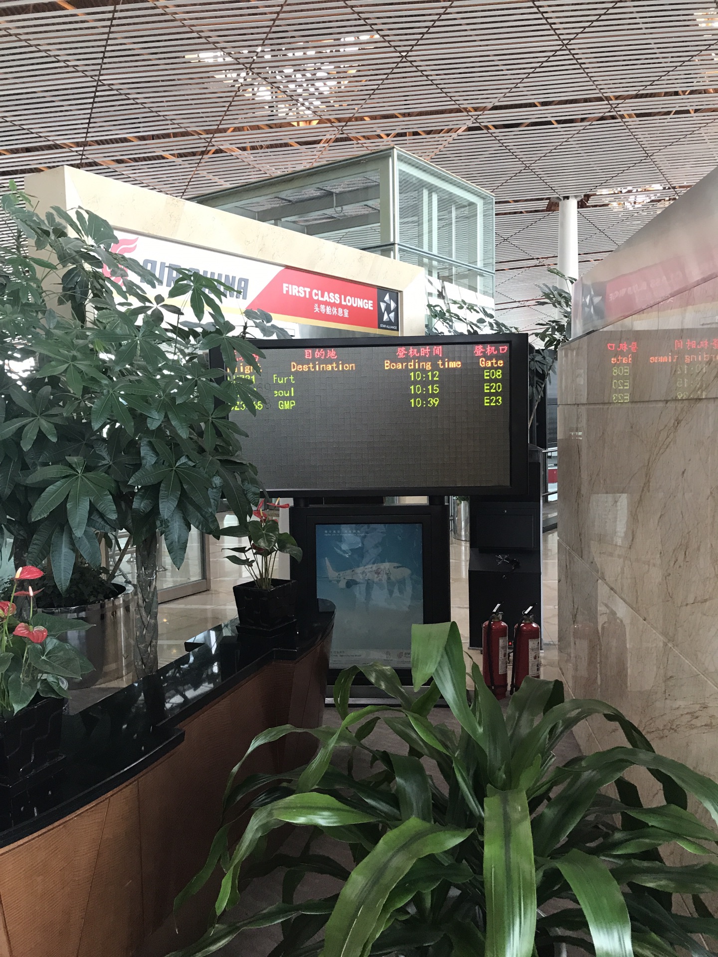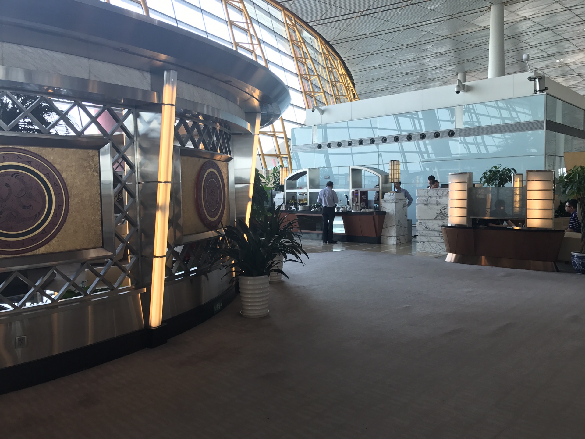 办完手续顺利安检,有PP卡,可以到国航头等舱休息室吃吃喝喝,感觉爽歪歪。我要在免税店逛逛逛,错过了头等舱休息室的热餐,那三只倒是吃得饱饱的。