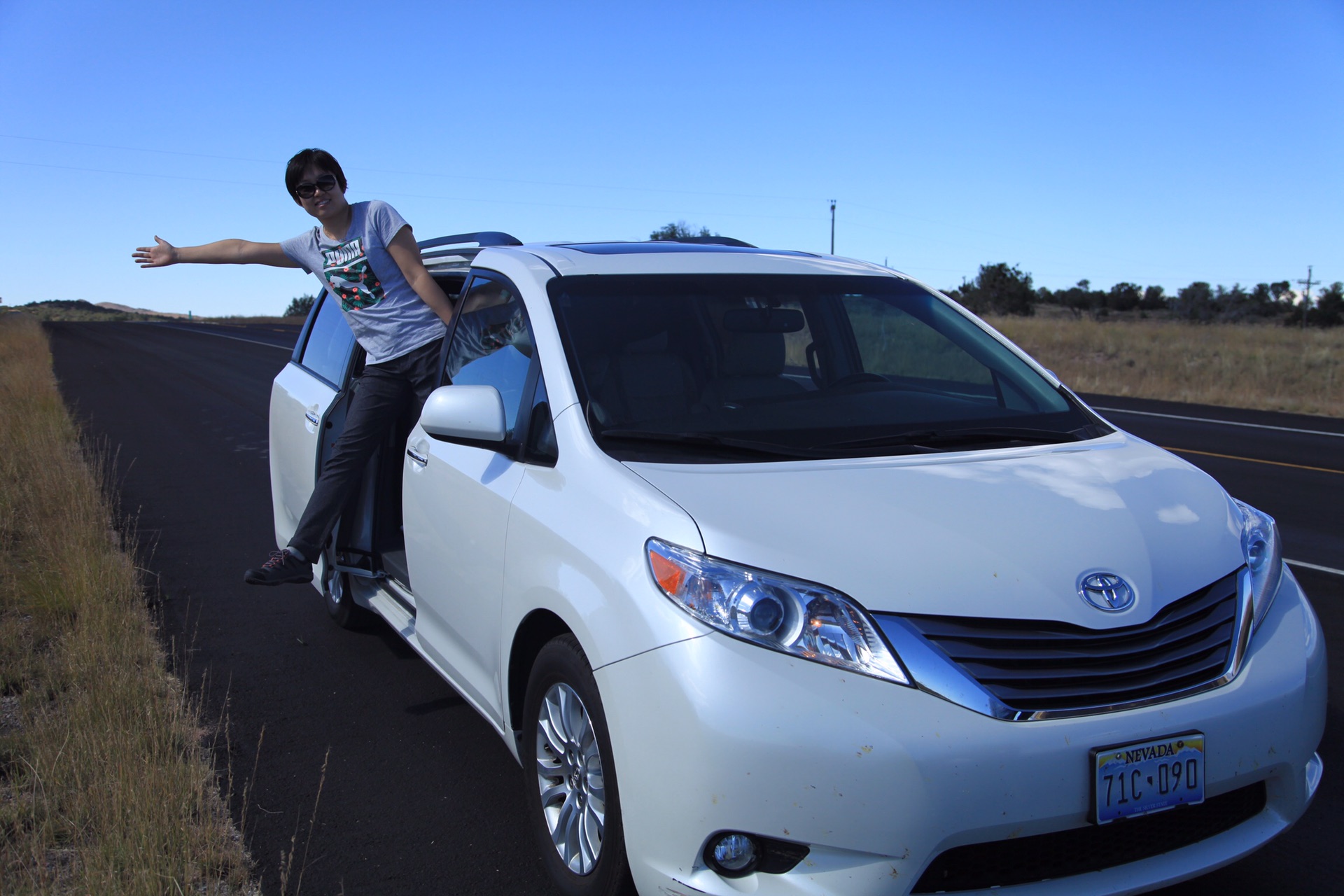 我是在携程上租的MPV,也就是类似商务舱大小的7座,然后增加了补充全险,在美国一共租了两段车,第一段是在黄石段,给的道奇Caravan真皮座椅,我们去的时候四个行李箱,绰绰有余。第二段是在拉斯维加斯取车洛杉矶还车,先给了一辆丰田的Sienna真皮座椅,很舒服,但是由于我们在从佩吉回拉斯维加斯的途中前挡风玻璃被小石子崩裂了,所以只得在取车点又换了一辆车,换的时候就剩尼桑Quest了,还不是真皮座椅,不过也还凑活。最满意的是丰田Sienna。