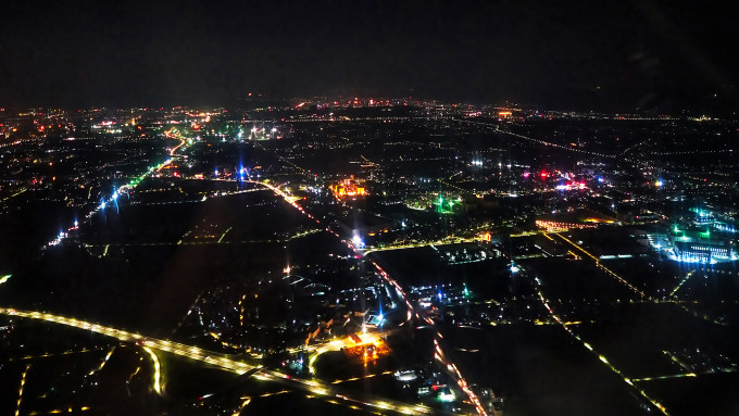 辰时抵达广州上空,浮夸的城市灯光照亮了眼前整幅画面,豪不低调地彰显着这个巨大经济区域的实力。