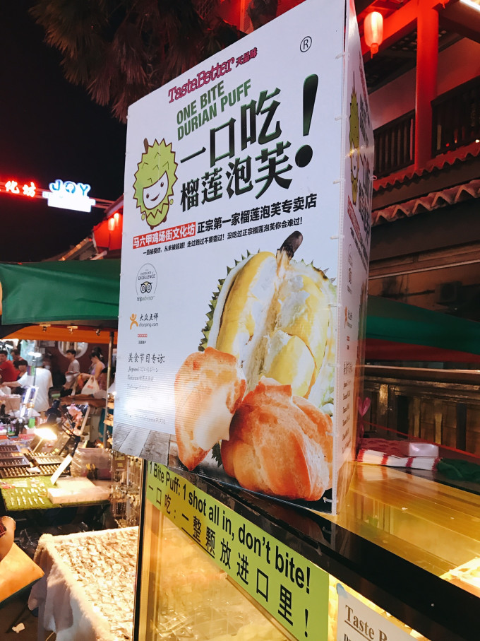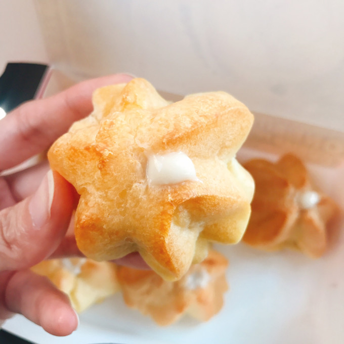 这家榴莲泡芙我每次都会买的,一定要一口吃完,不然爆浆的话要小心你的手和衣服喔!