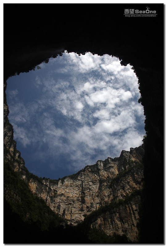 站在坑底仰望天空,我不知道我该如何形容此时映入我眼帘的风景,巍峨?陡峭?险峻?秀美?不,我觉得这些词都只能片面的表现出天坑的一小部分特色,想要感受天坑的美景,只有亲身经历才会体会的到。