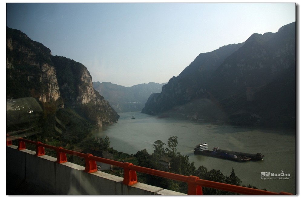 翻坝车上看到的宜昌段三峡,有了大坝,三峡已经不复当日之名,有景而无险。对于长期生活在这里的居民来说,也许方便了很多,安全了许多,坐船也不要再提心吊胆,可是对于从来没有欣赏过三峡美景的外地人来说,也许就是永远无法一见的遗憾。