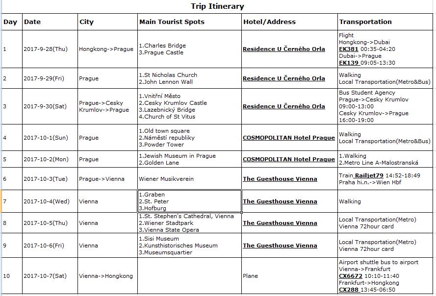 这次行程10天,布拉格6天、维也纳4天,全程我们会采用公共交通工具,准备开始属于我们两个人的旅行。