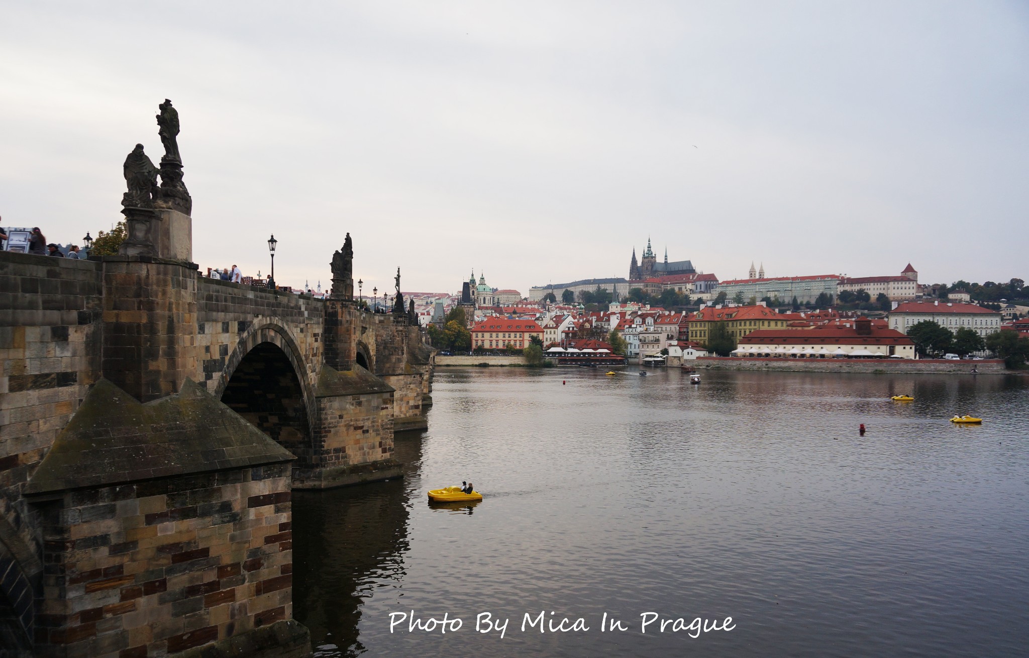查理大桥,建于1357年,横跨了伏尔塔瓦河,两端分别是布拉格城堡区和旧城区。