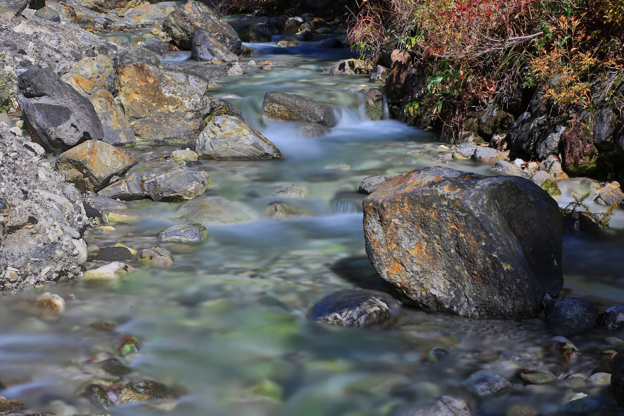 温泉水而形成的溪流,即使天气寒冷,也可以脱下鞋子欢乐戏水。