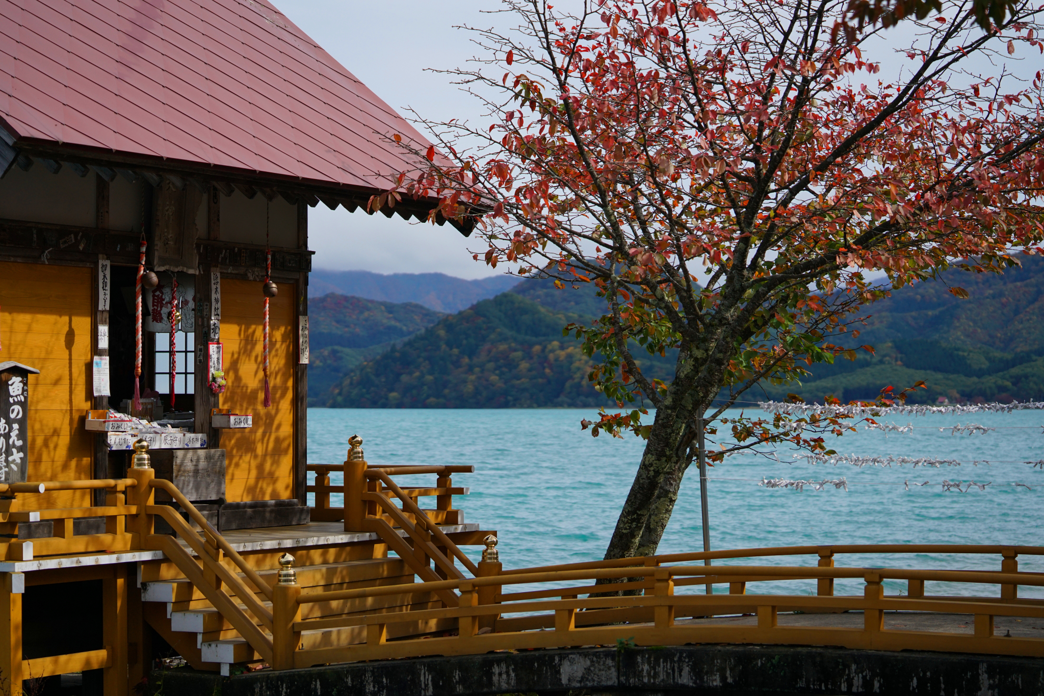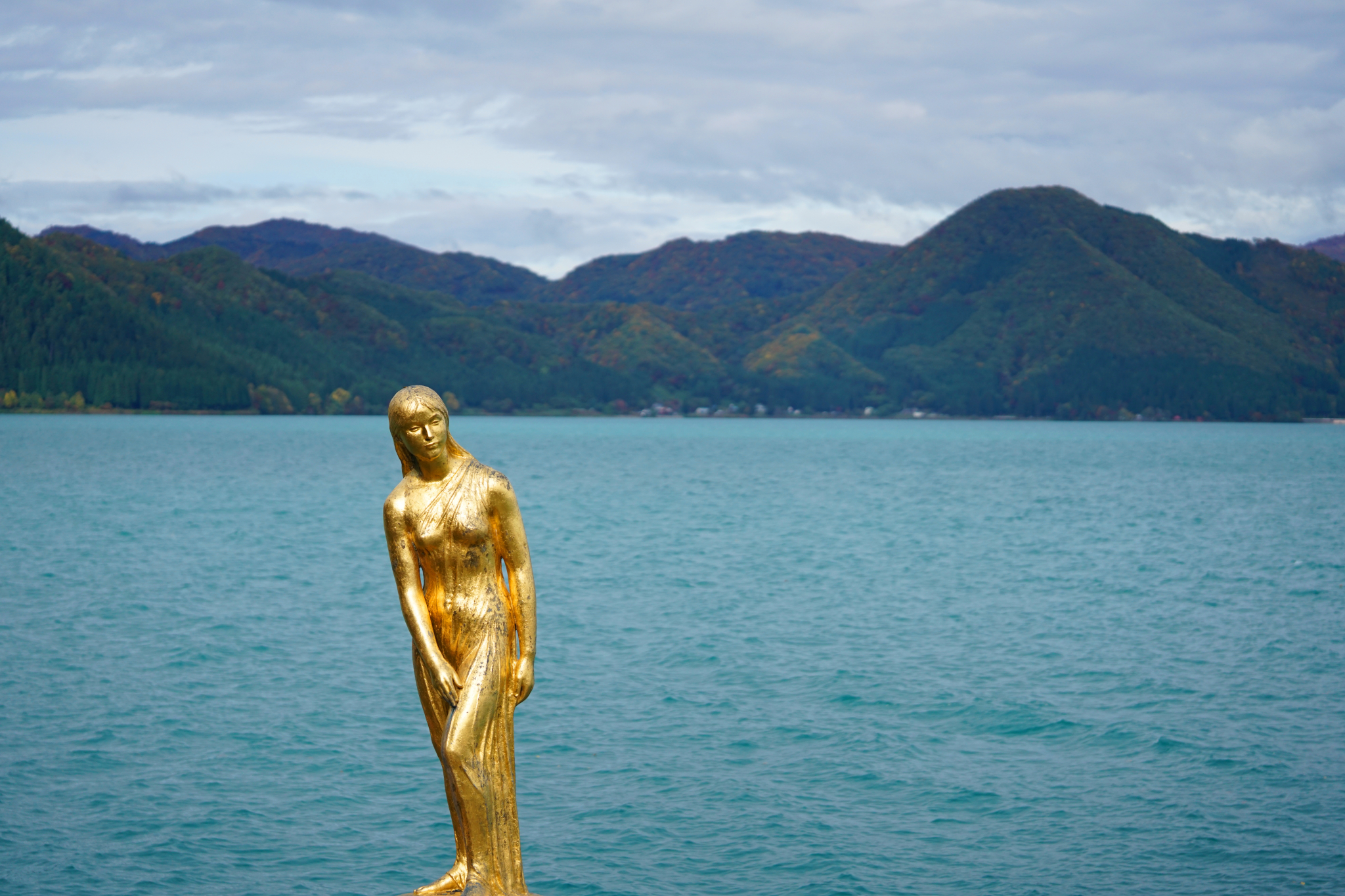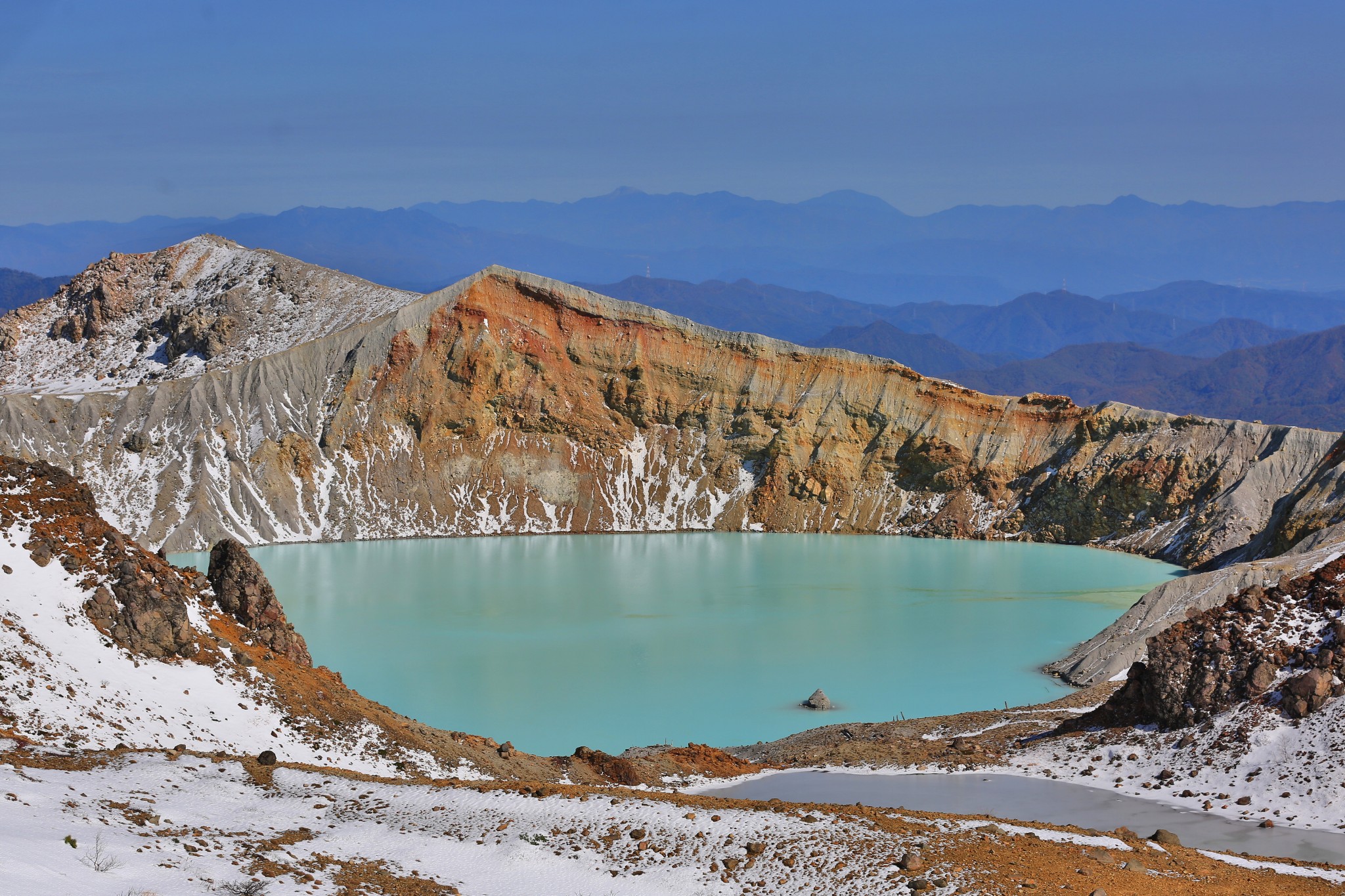 秋田县的田沢湖(田泽湖)是140万~180万年前火山喷发而形成的湖,日本水深最深的湖,因为湖内湖底堆积的火山喷发物,所以阳光照射下,湖水颜色由翡翠色到深蓝色皆可见。