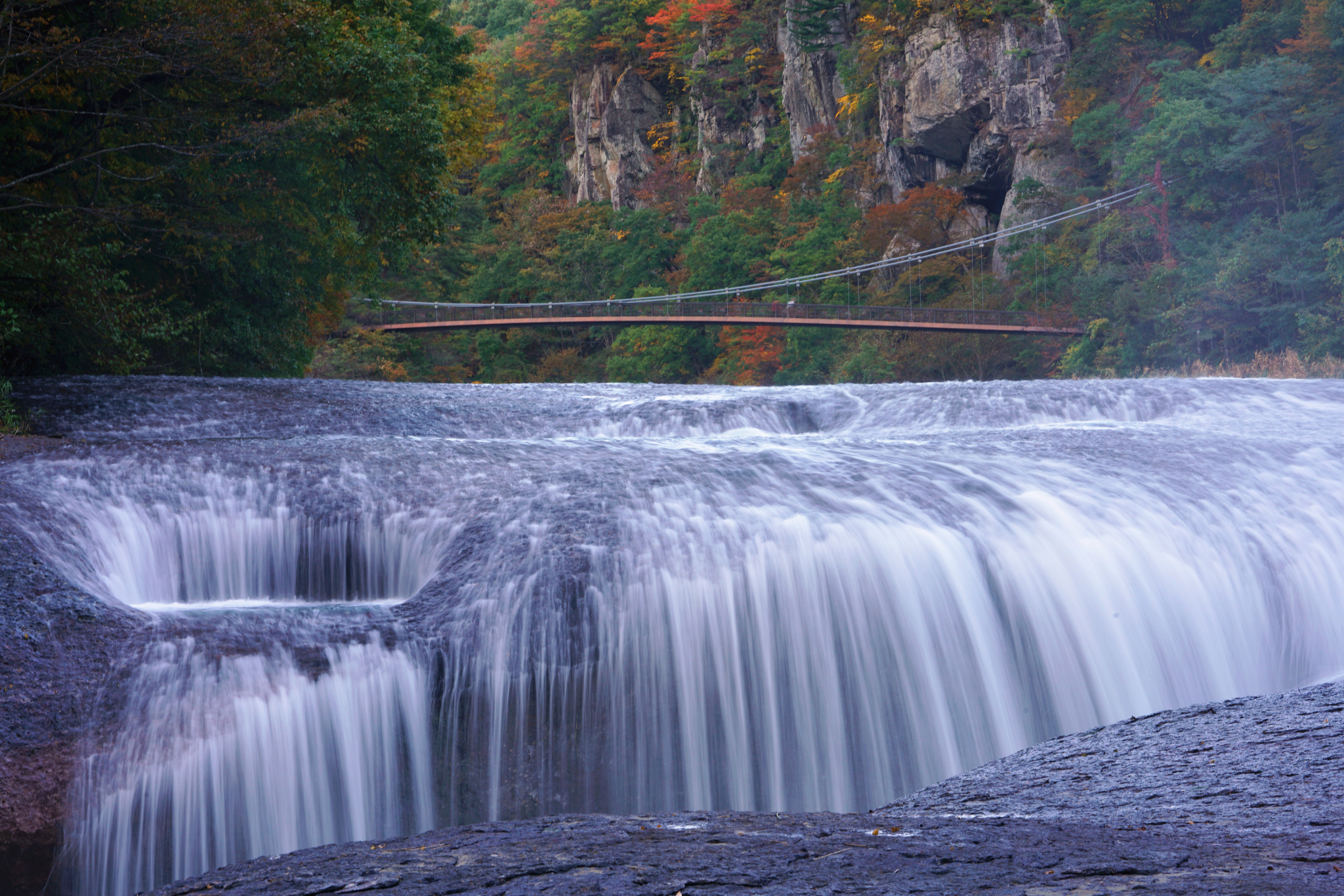 群马县沼田市利根町的山里,有一处世界也称奇的瀑布,叫吹割瀑布。瀑布左右像被利斧劈开似的,形成了瀑布对流的景象。