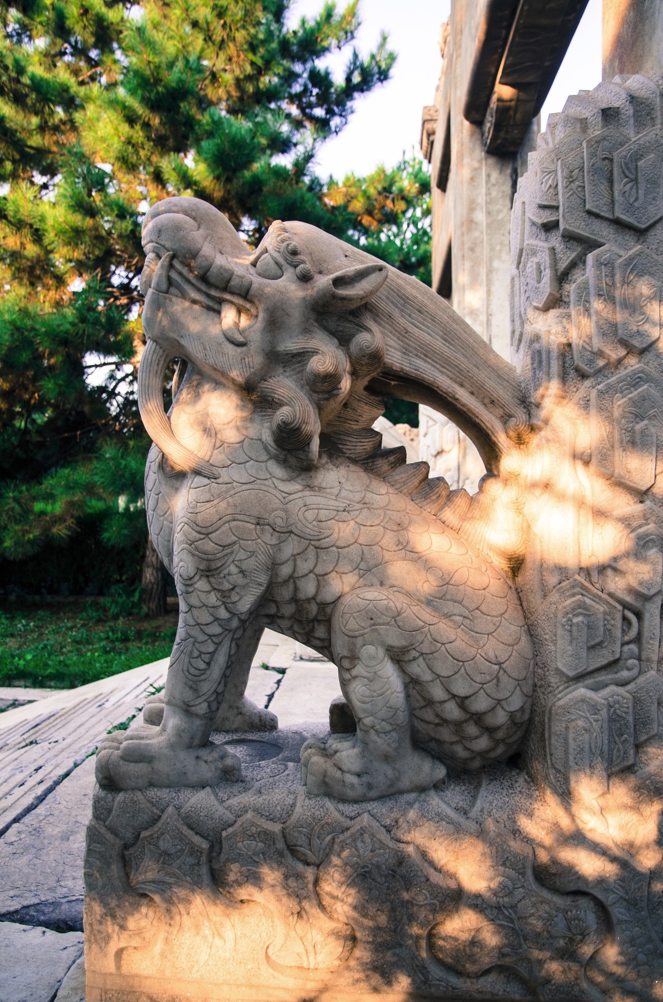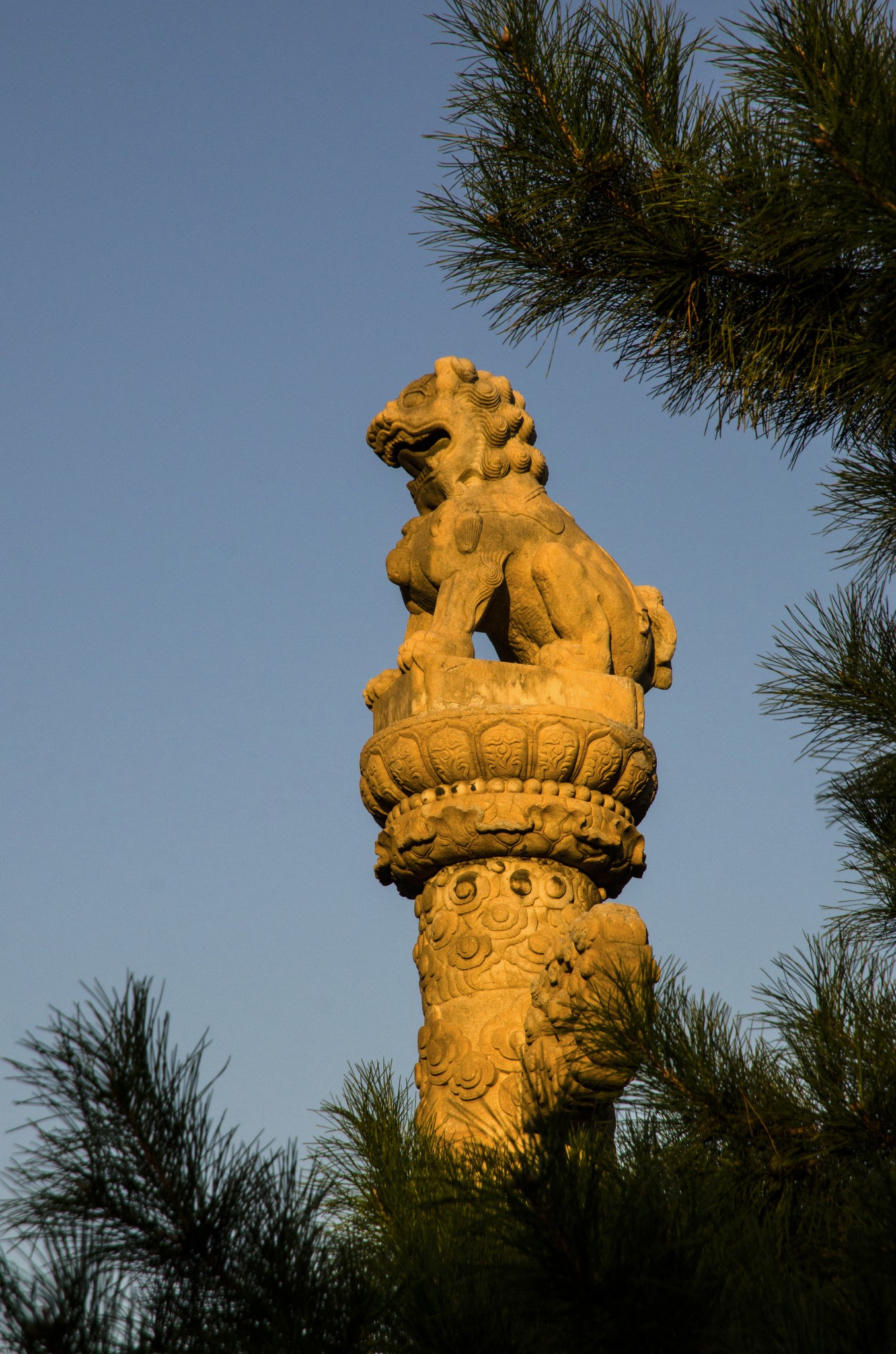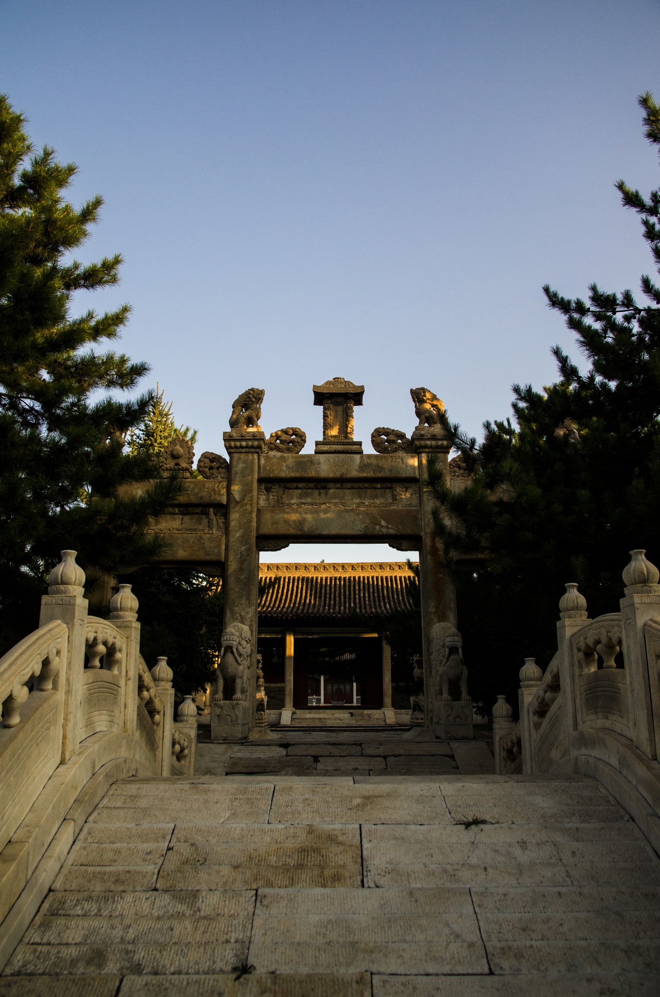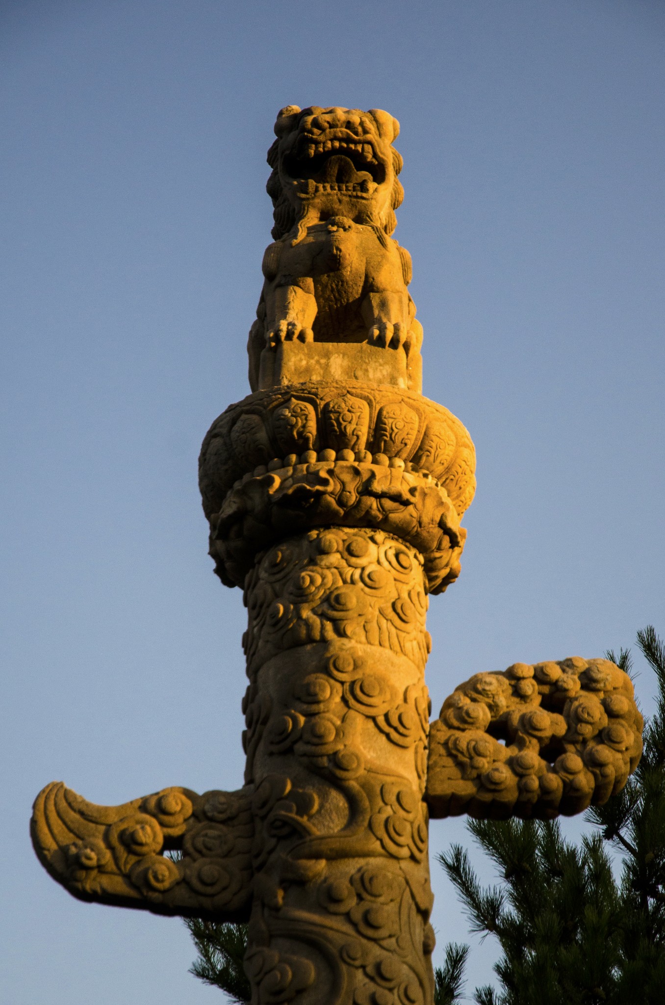 从侧门进,首先看到的就是华表,清晨的斜射光暖暖的色调。