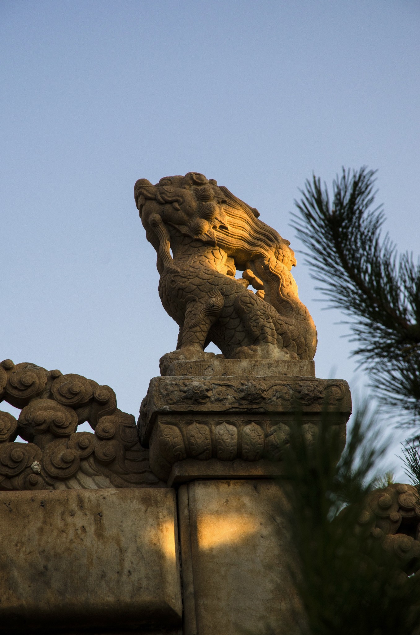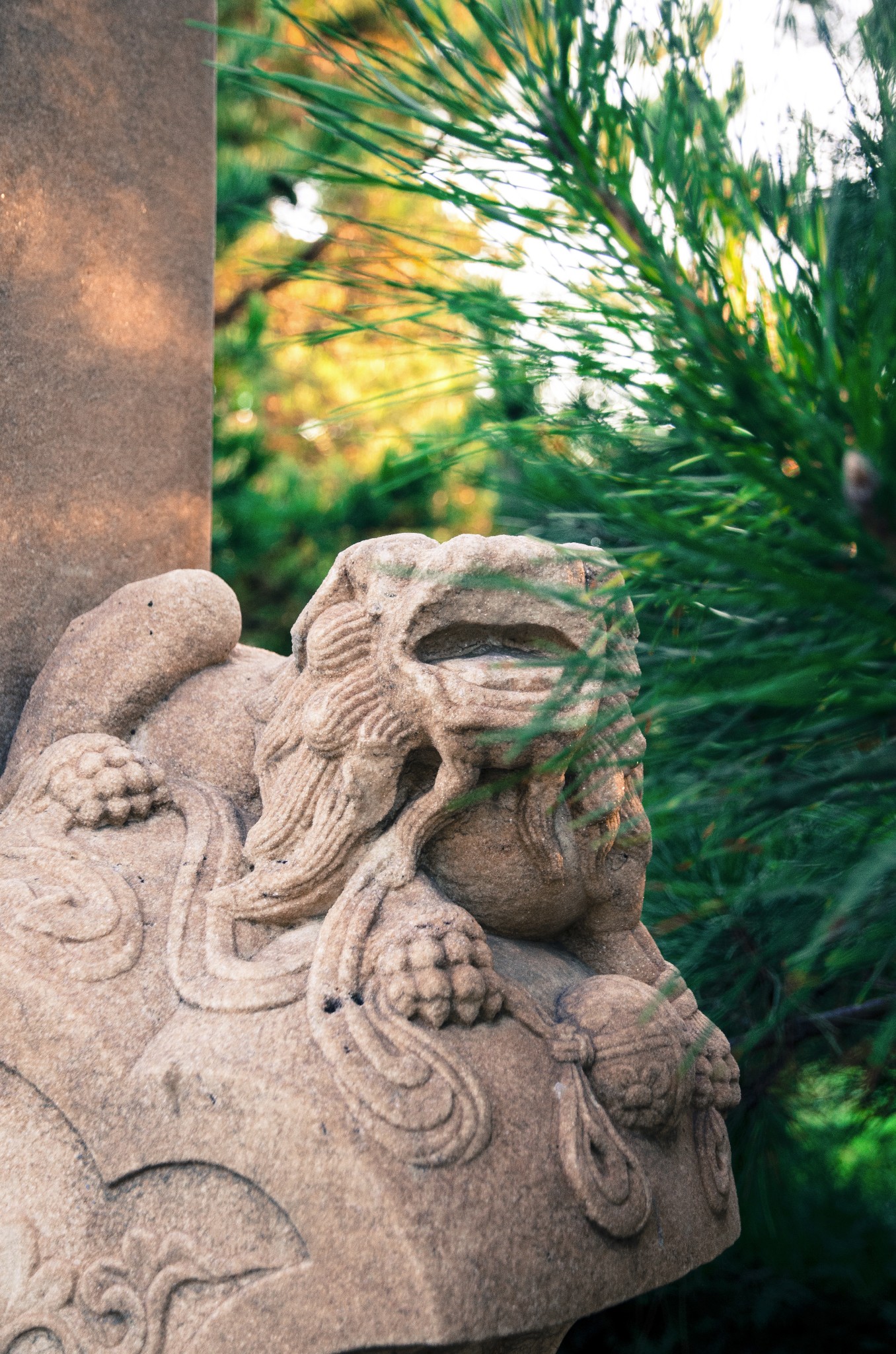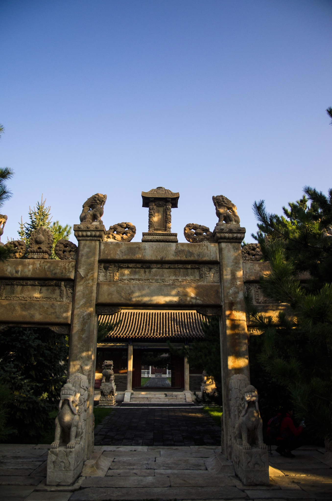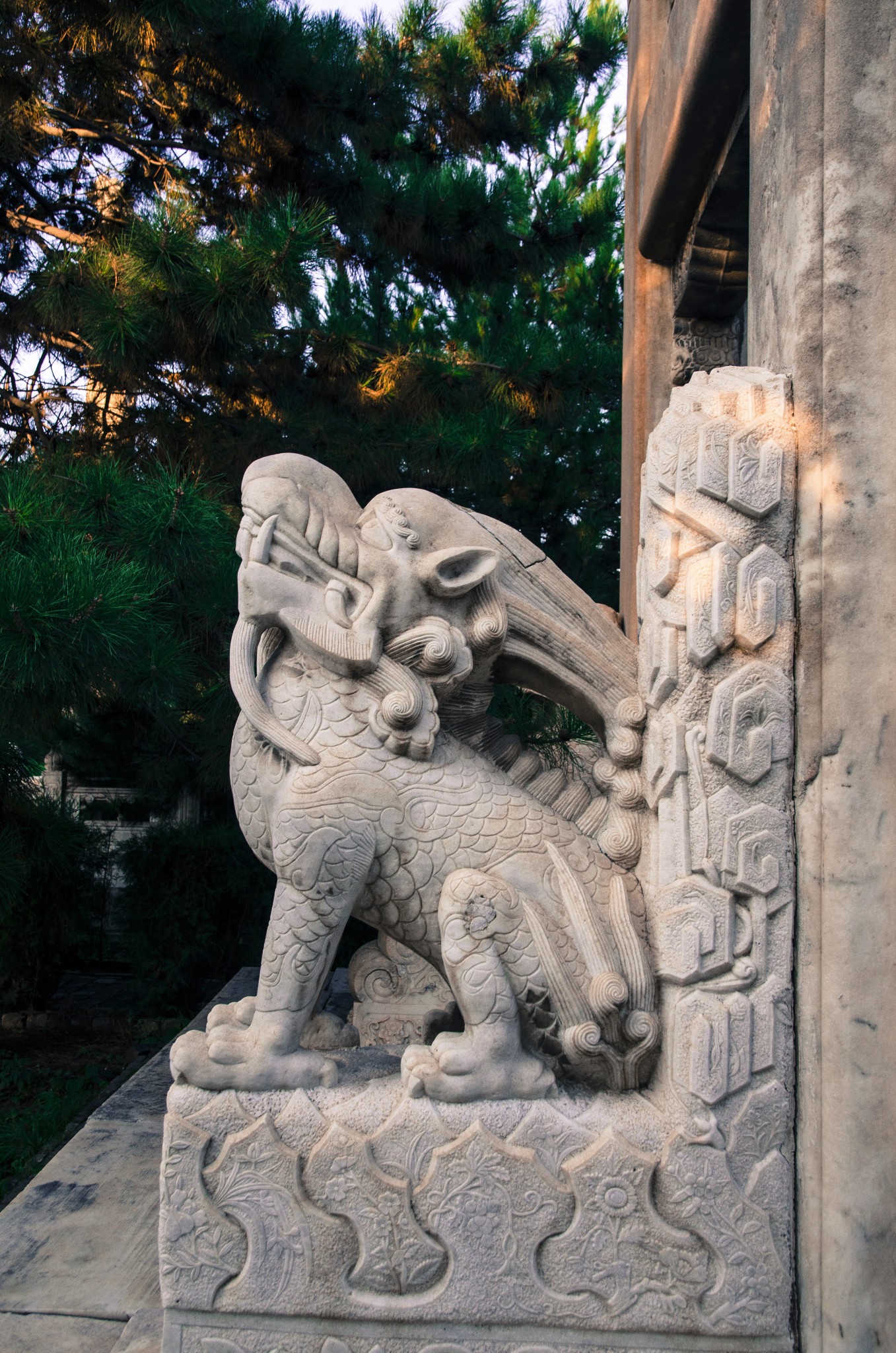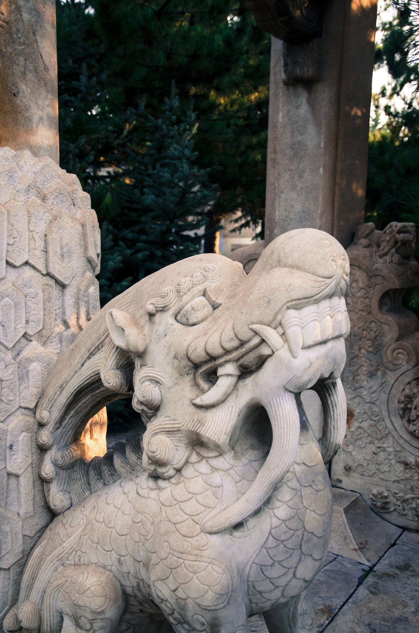 从侧门进,首先看到的就是华表,清晨的斜射光暖暖的色调。