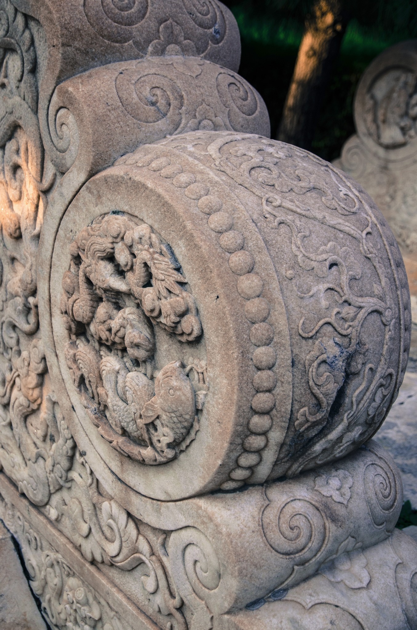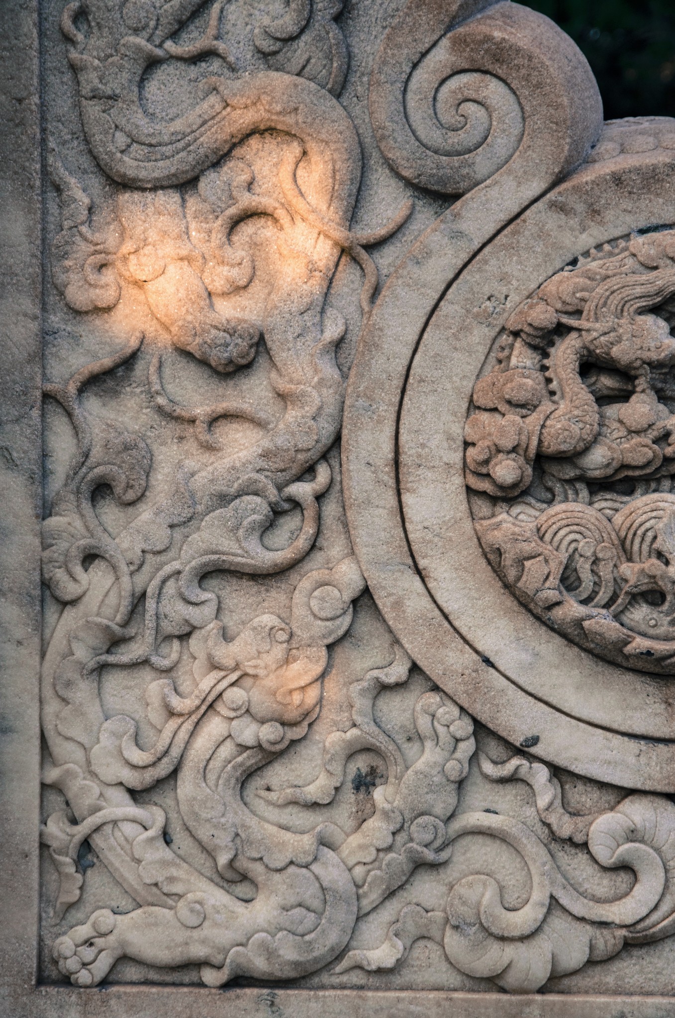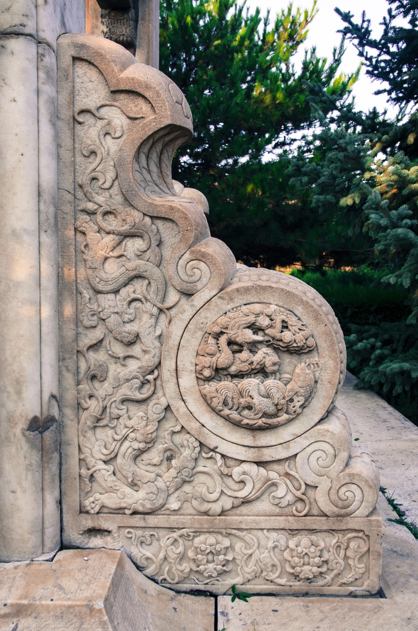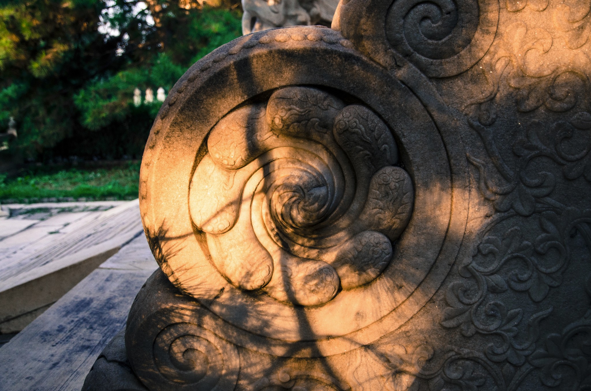 从侧门进,首先看到的就是华表,清晨的斜射光暖暖的色调。