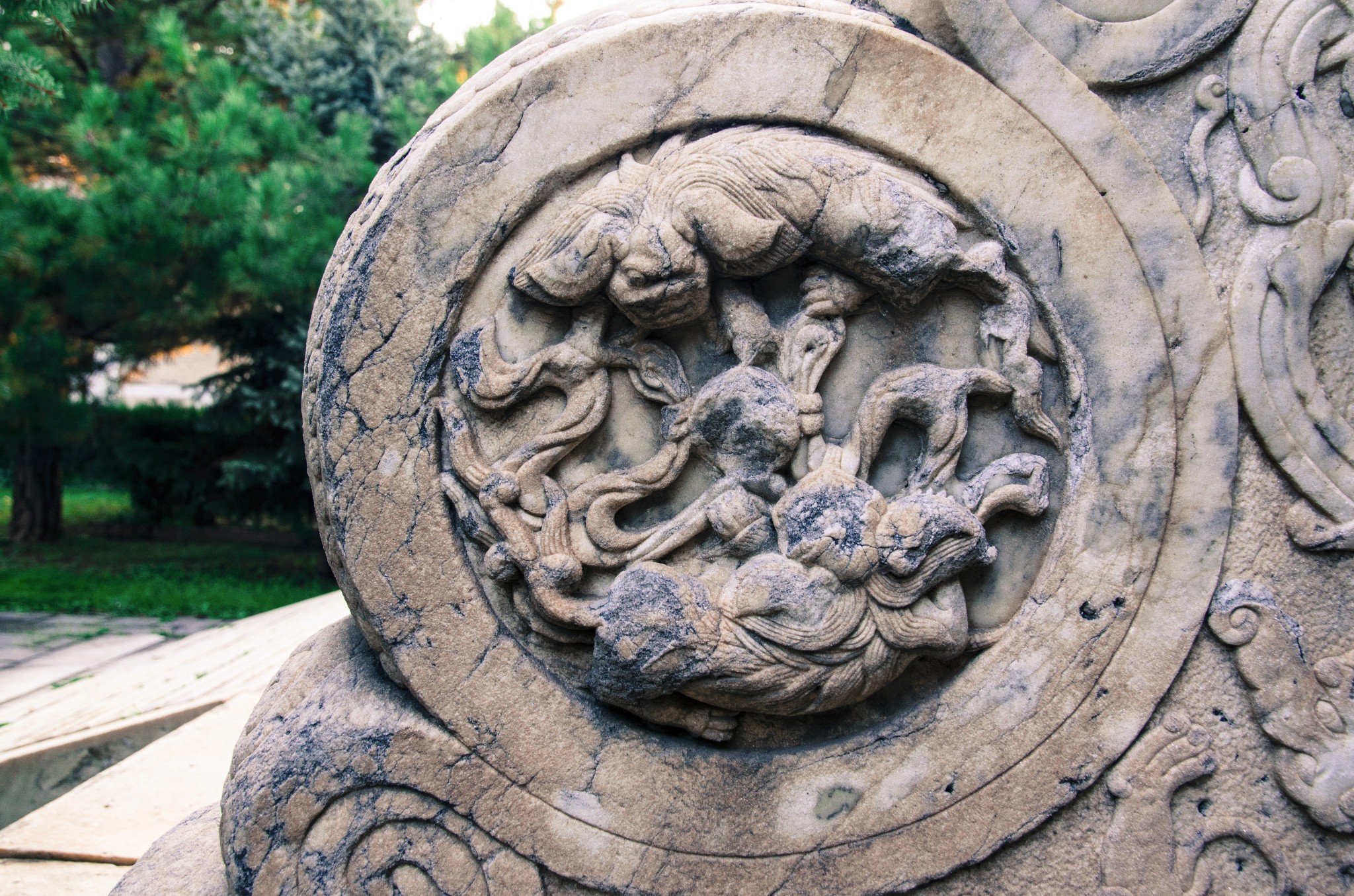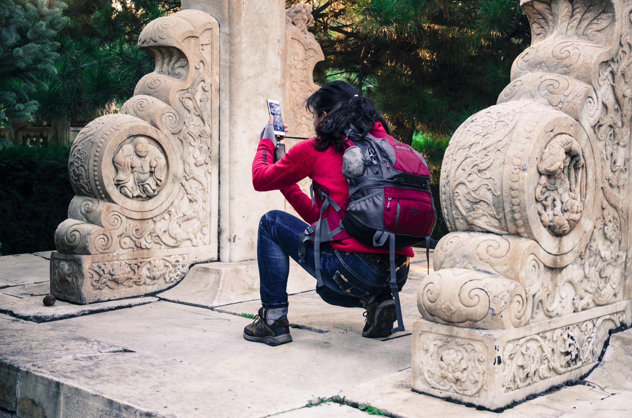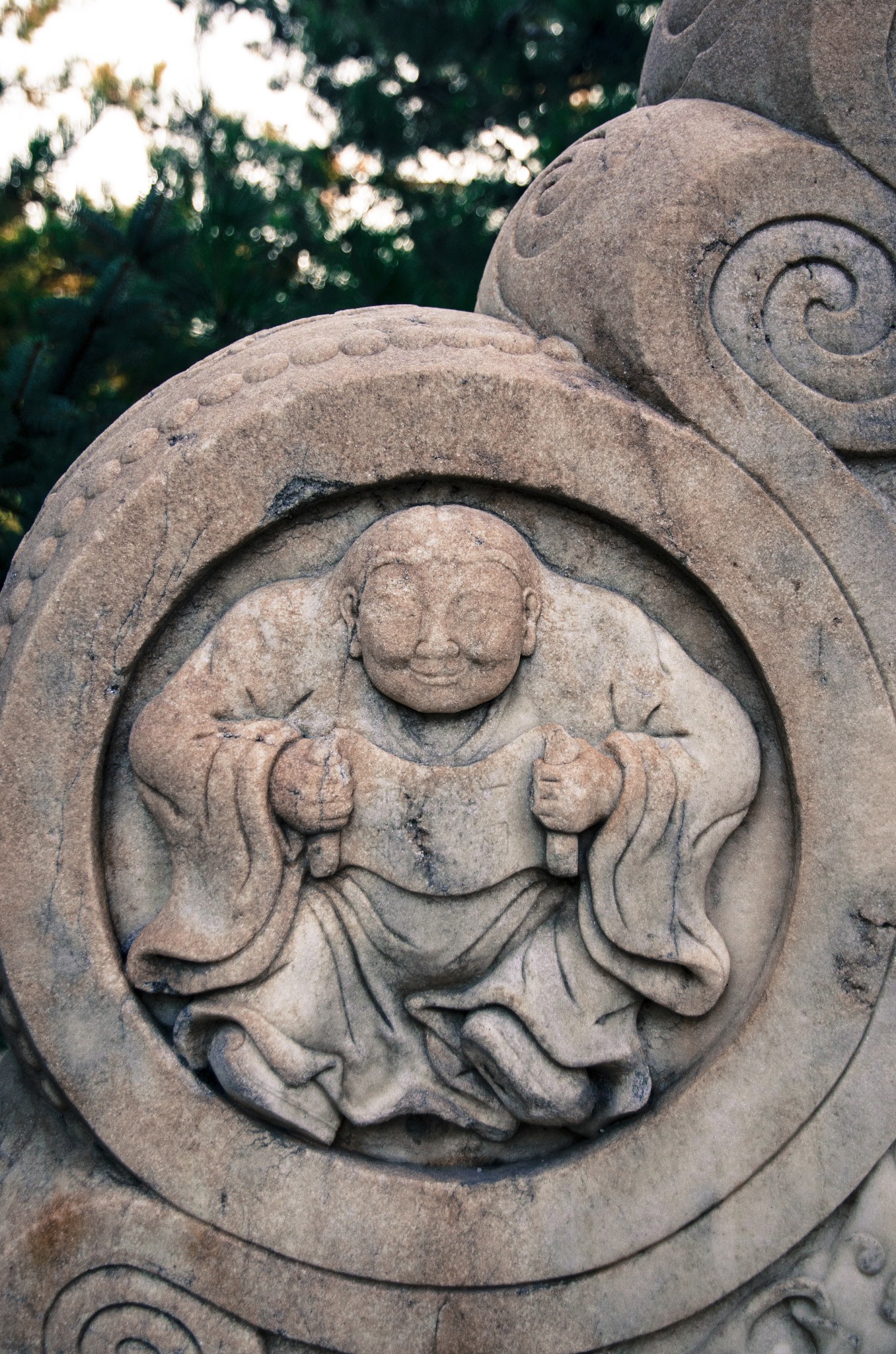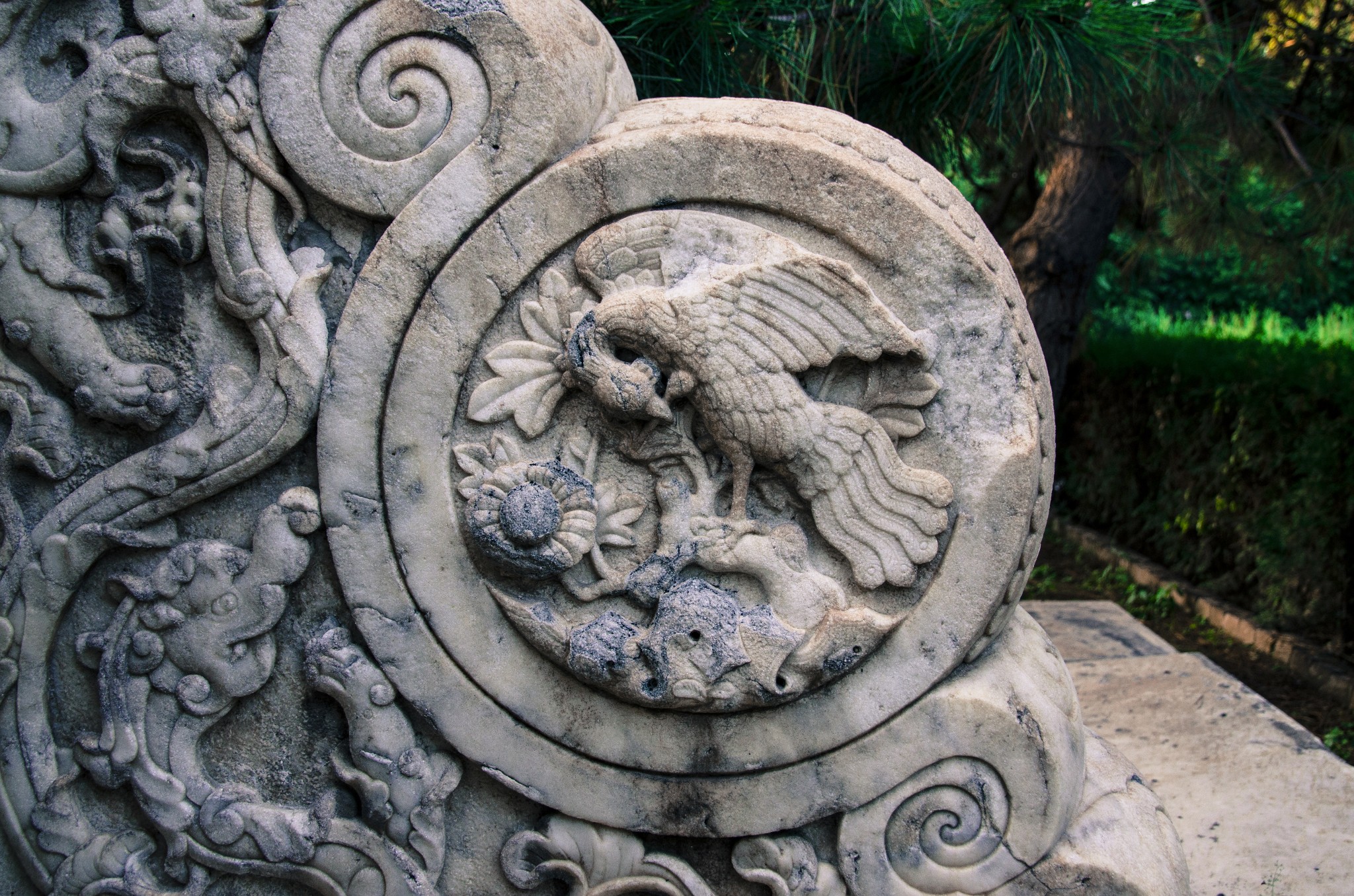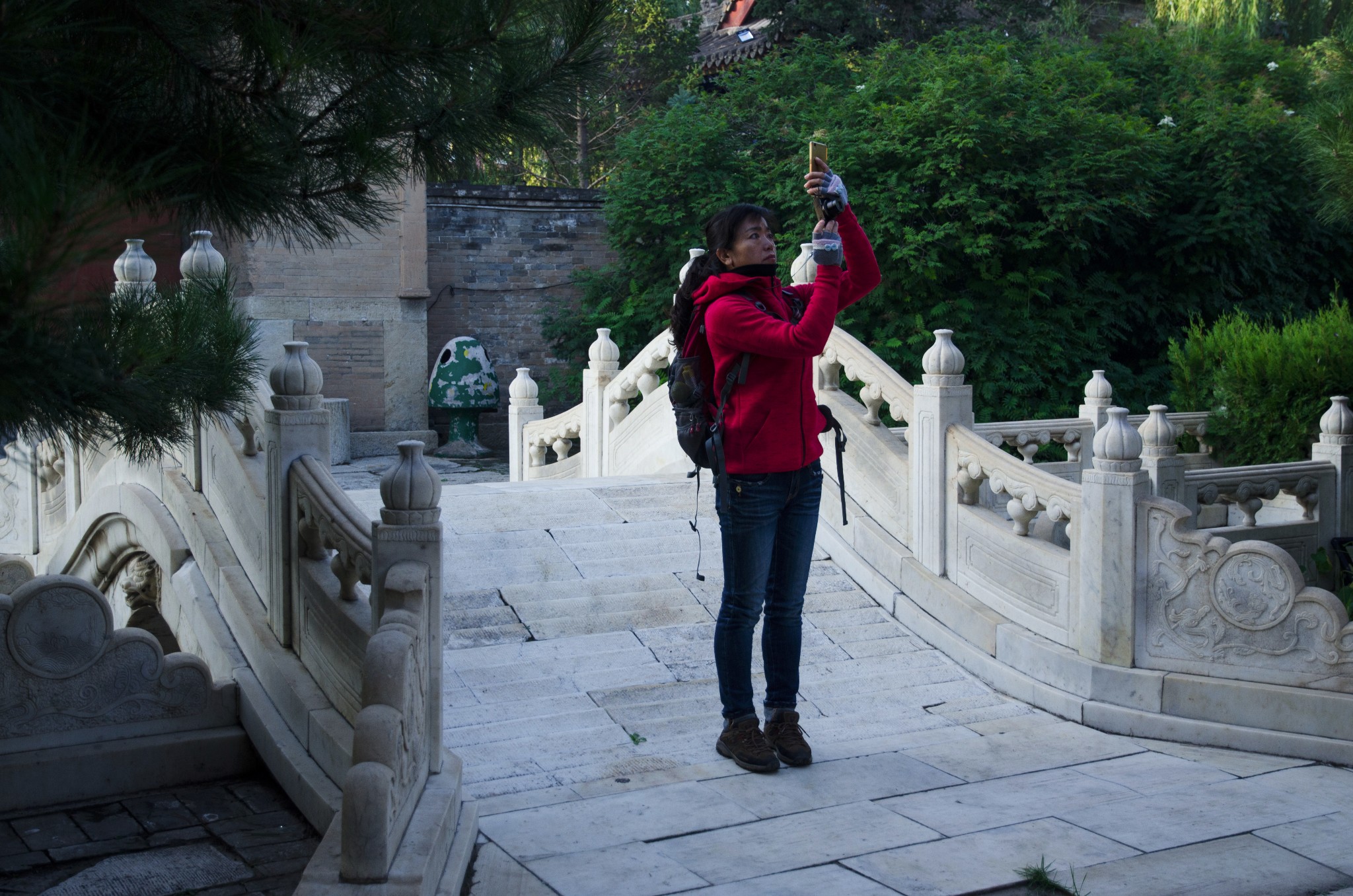 从侧门进,首先看到的就是华表,清晨的斜射光暖暖的色调。