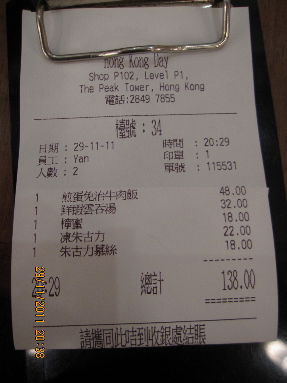 11.29日 今天睡醒吃早餐 ,也是点的套餐那样的。发现香港 吃早饭的地方都可以刷八达通卡呢