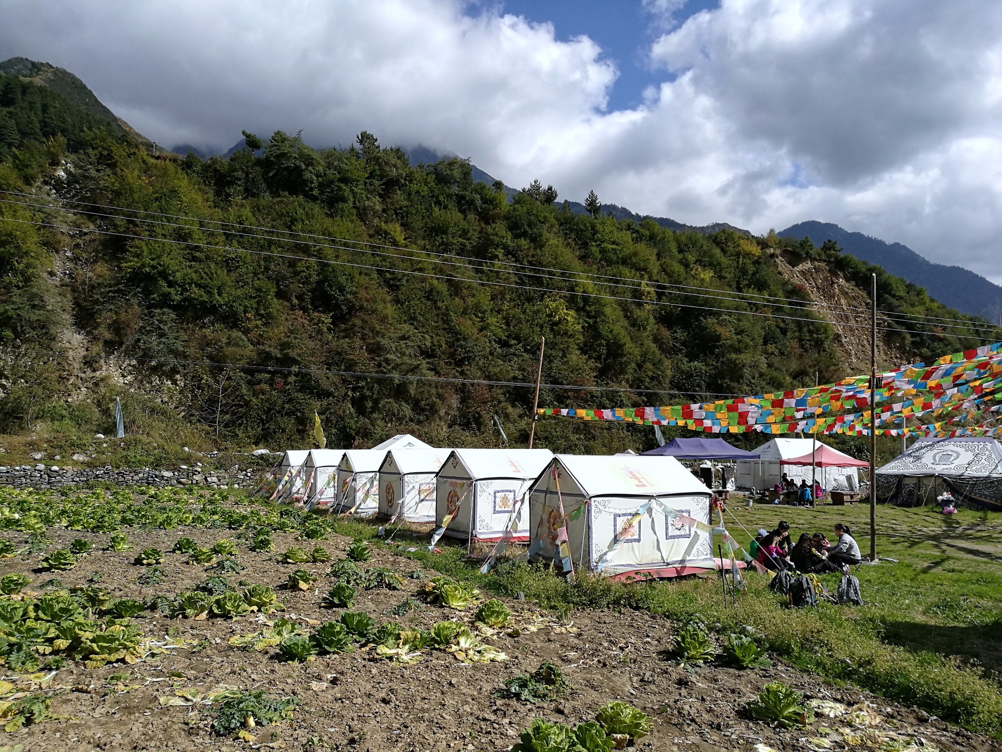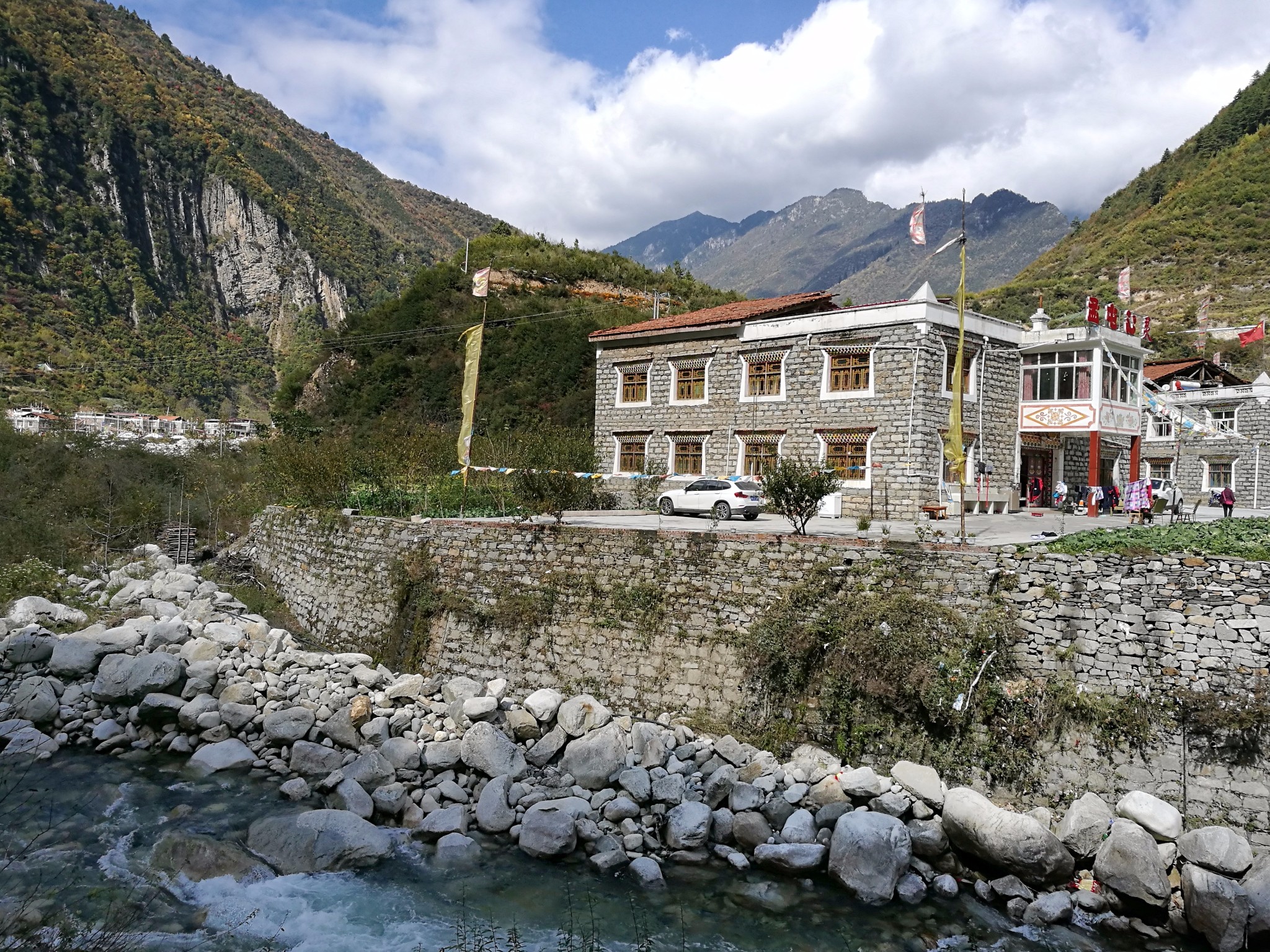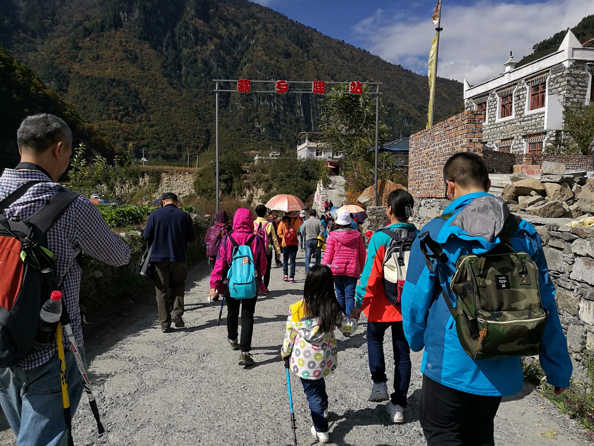 大巴车不能开到所住的藏家乐,徒步进去,还是有几百米。