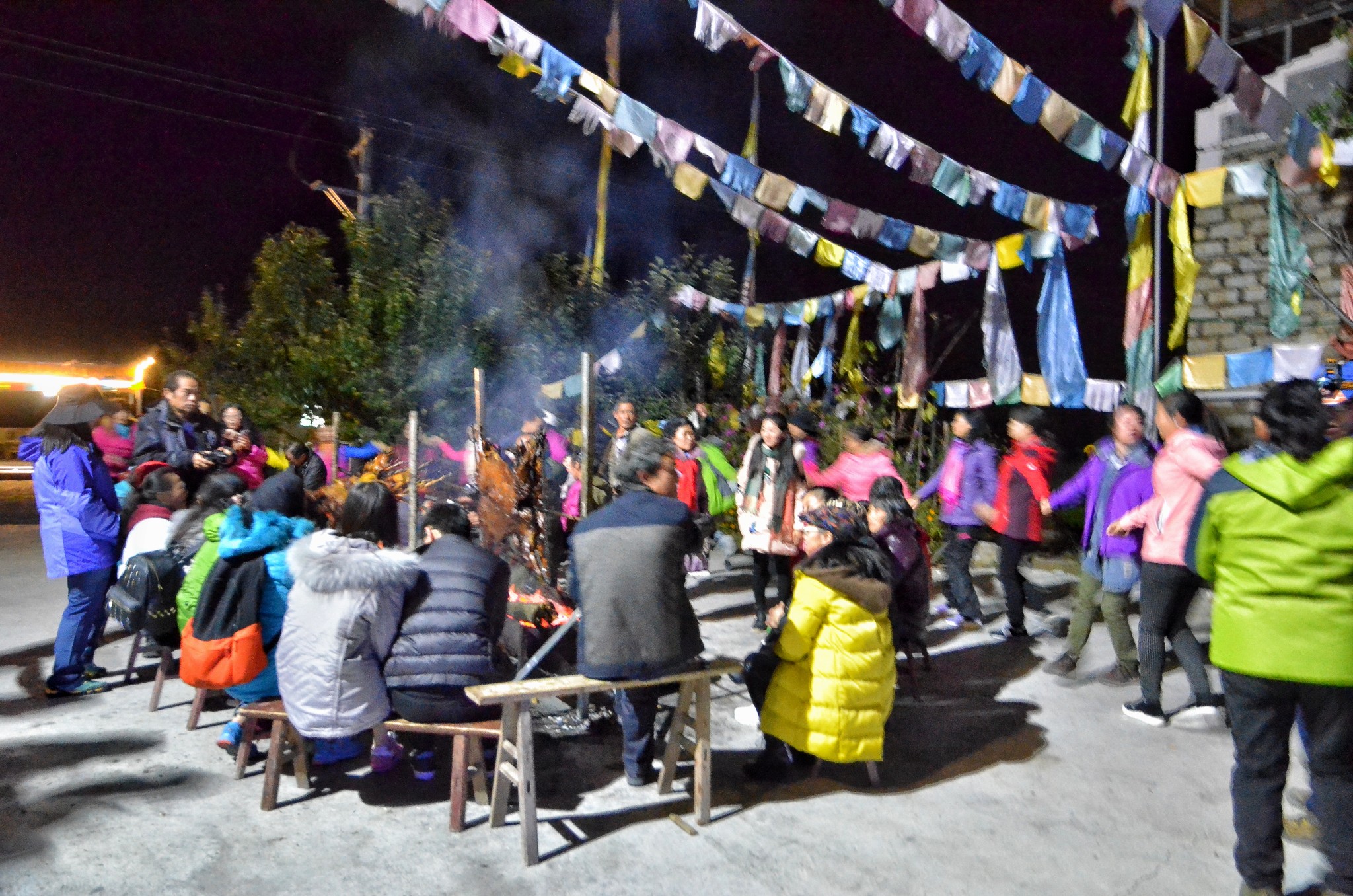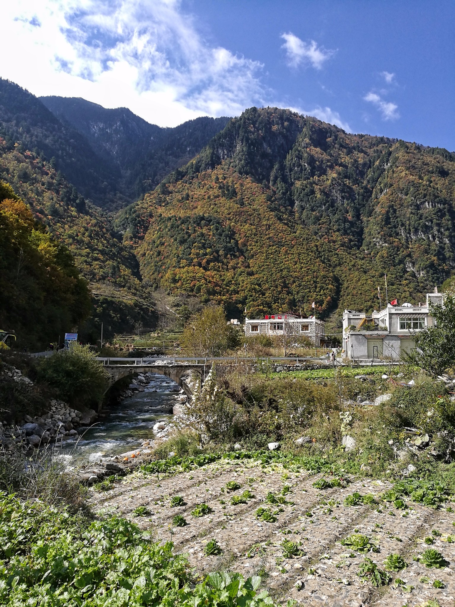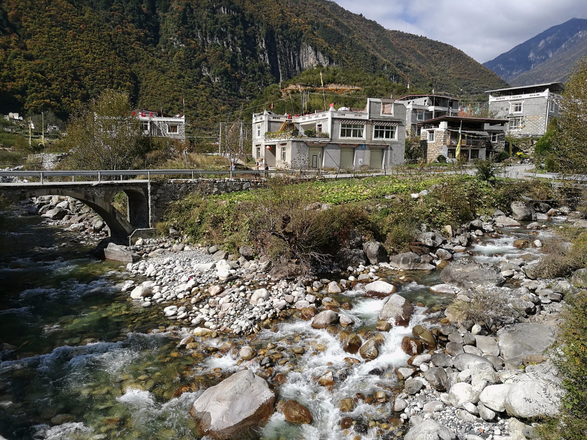 大巴车不能开到所住的藏家乐,徒步进去,还是有几百米。