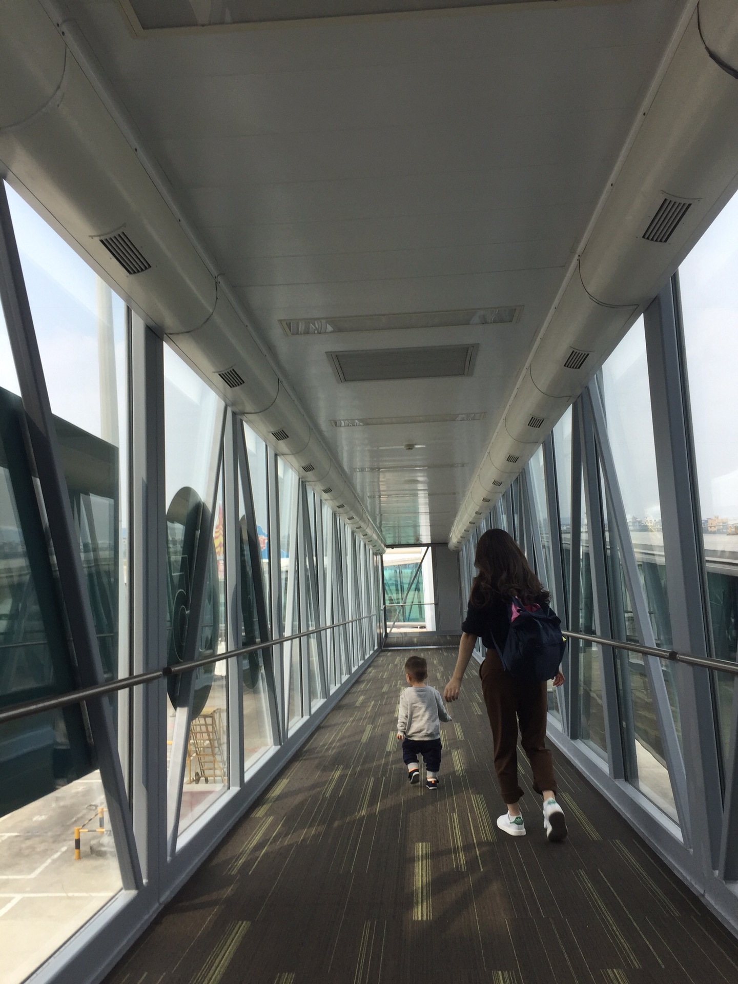 虽说十二点多的国内航班,想想时间是很宽裕。但虽然比预计早起了半个小时,带着孩子又做家务又理东西还是很赶。八点的时候我姐就打电话说他们已经安置妥当,准备出发了。我天真地以为我们八点半也能出发,结果给汤圆喂个早饭,他的衣服上沾满了粥,换衣服洗衣服擦桌子擦地板,眼看着时间就要到九点了,行李还没准备好,真是整个人都要急疯了。