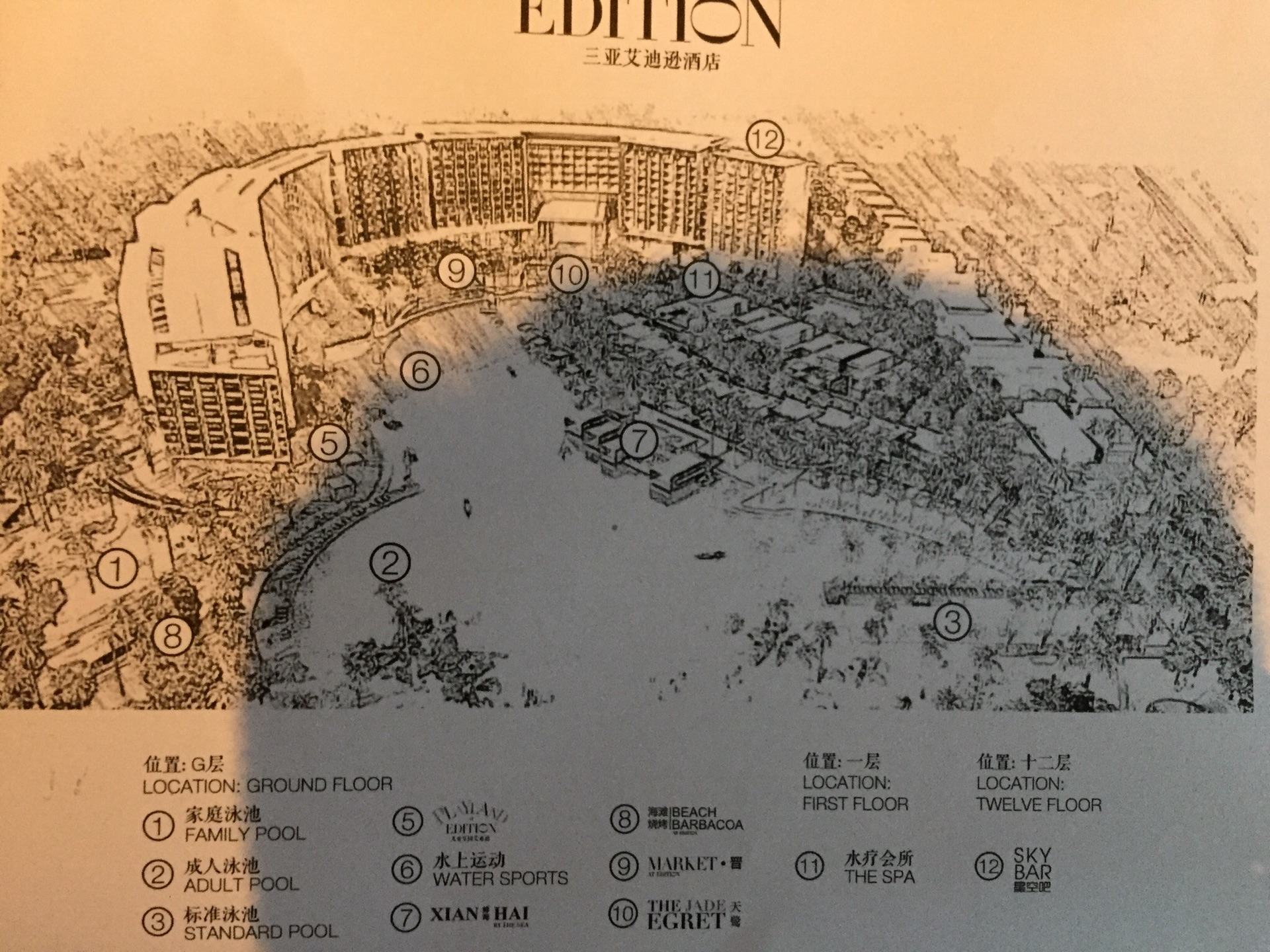 上图为酒店提供的地图。虽然艾迪逊相比周边的酒店比较低矮,但很开阔,这么多泳池感觉都不需要去海边了。