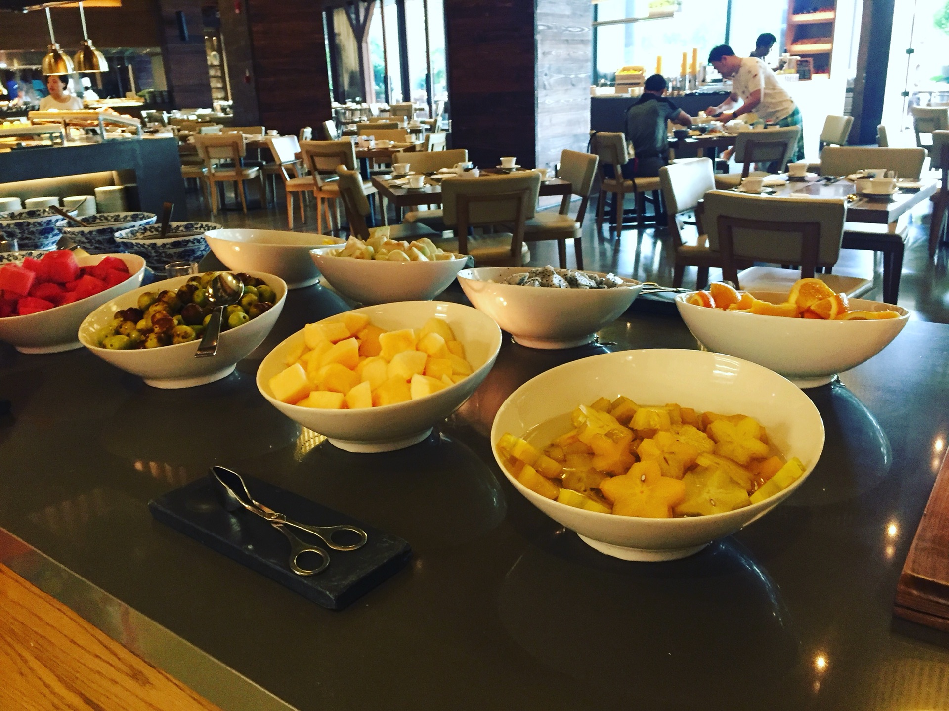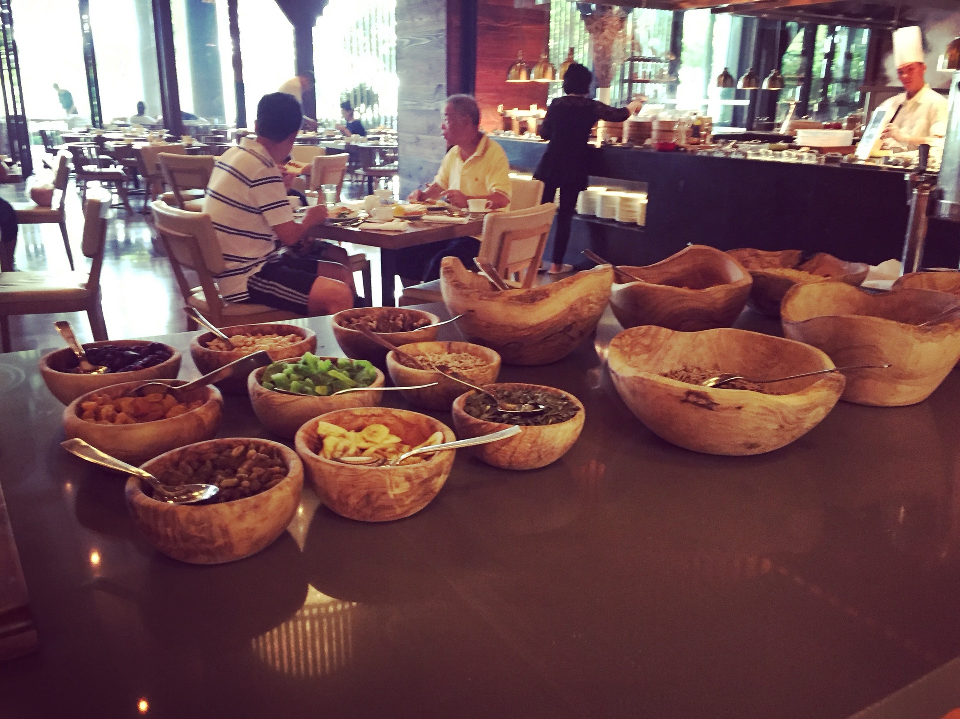 早餐的种类很丰富,品质也很高。特别喜欢那里的面条,最后一天还有卤的牛肚和牛肉,超级好吃!想到口水就要流下来了。盛面条和粥的碗都很有质感。不过对着一众厨师我也是不太好意思拍照。虽然牛奶不是很好喝,但现切的椰子很好吃,嘟第一天就一连喝了五杯椰子水,然后就饱了。