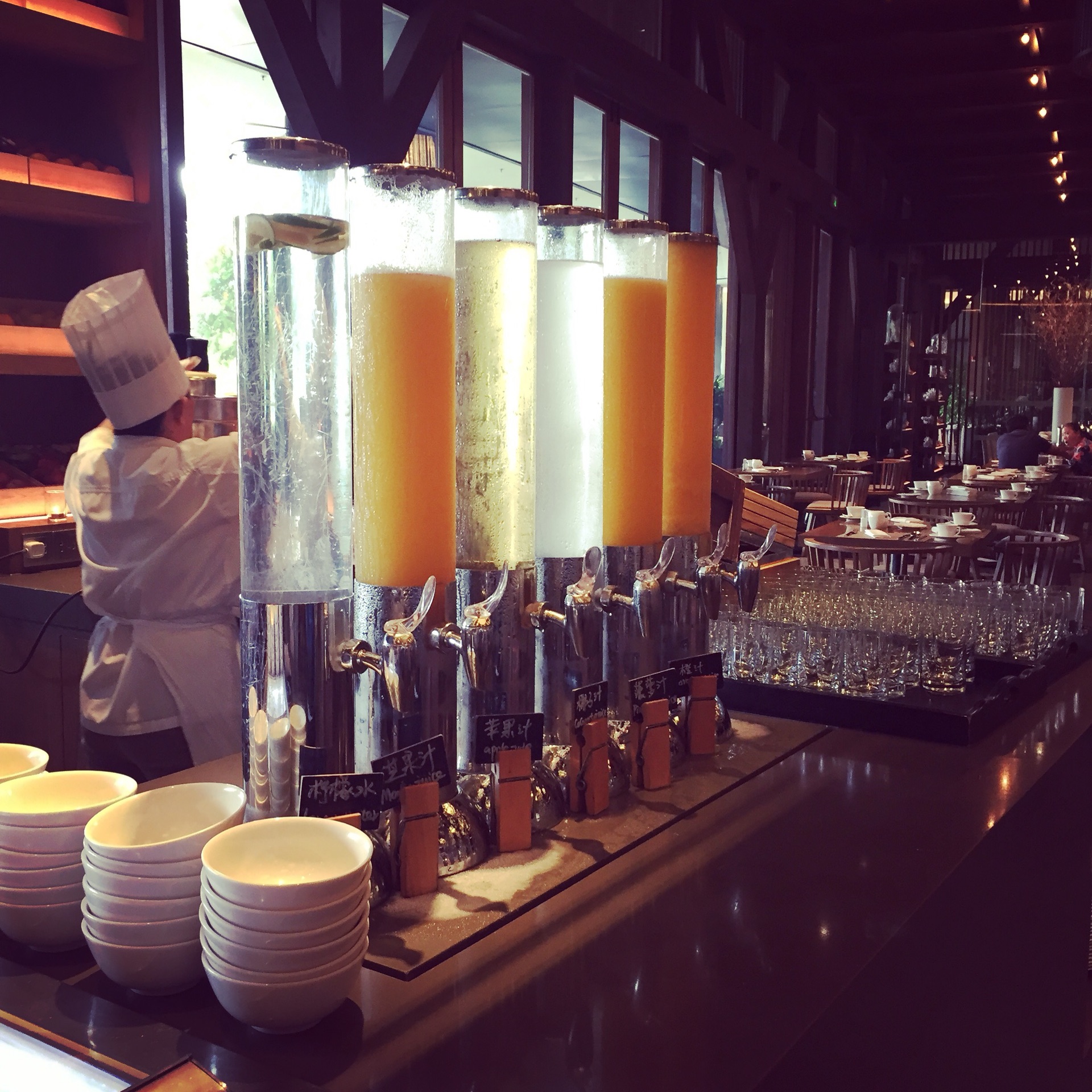 酒店的早餐真是超级喜欢~很喜欢晋餐厅的布置和氛围。餐厅前台有服务员会安排座位,帮我们搬好儿童餐椅、放好儿童餐具,还为我们提供小朋友的餐食,有蒸蛋和蔬菜泥可以选。蔬菜泥虽然恬恬和汤圆都不爱,但我觉得又好看又好吃。
