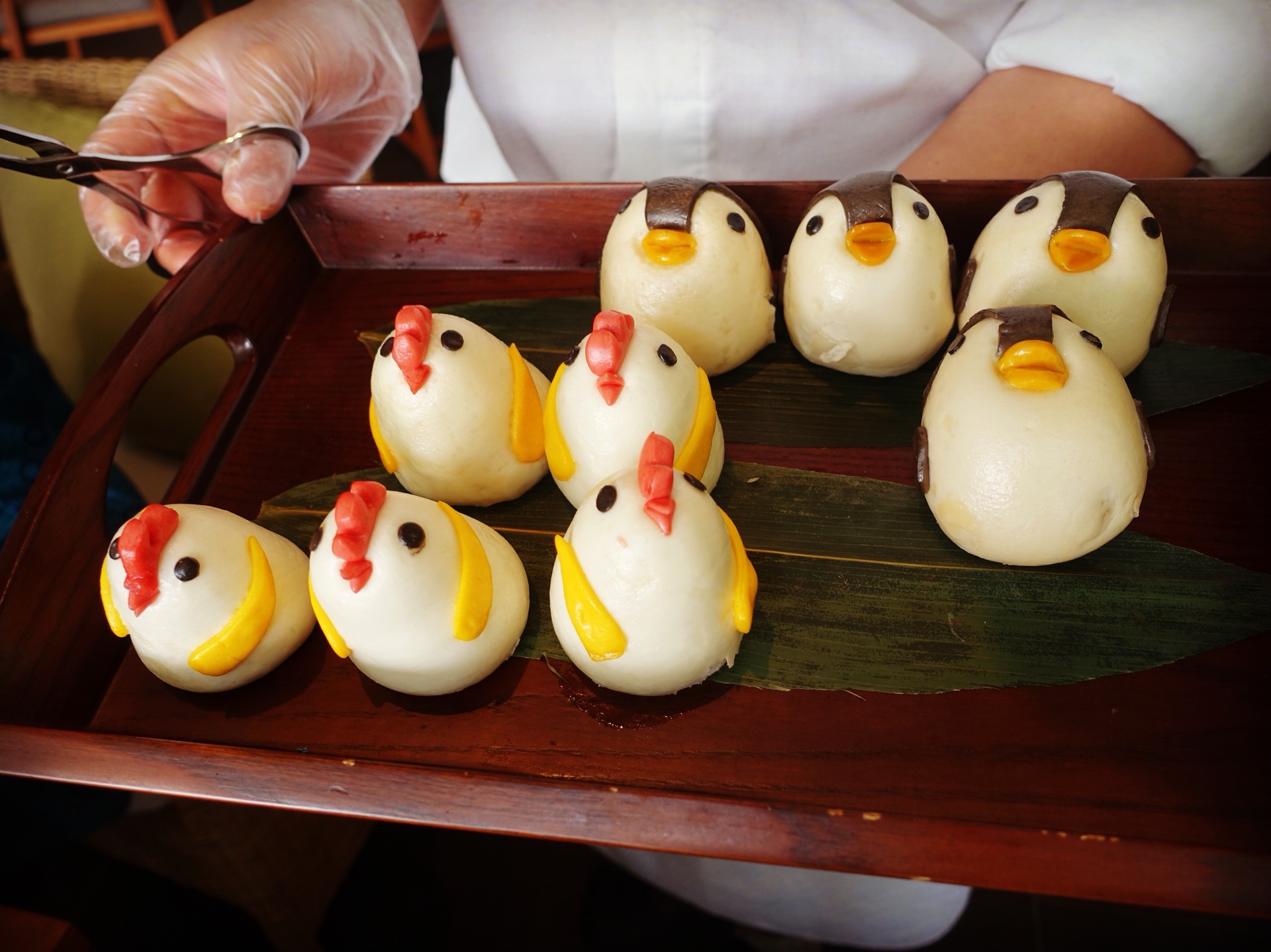 还有现做的蛋卷和小炒,简直让我这种小市民大开眼界。服务员都很友好地跟小朋友Social,比如时不时地过来跟恬恬说“要乖乖吃饭哦”,到点厨师还会来分很可爱的小企鹅和小鸡的馒头,让小朋友自选。嗯,一切都很合我心意,非常完美。当然如果有一天汤圆可以自己吃完一顿早饭,不需要我喂饭,我能安静地吃一餐早饭的话就更好了。