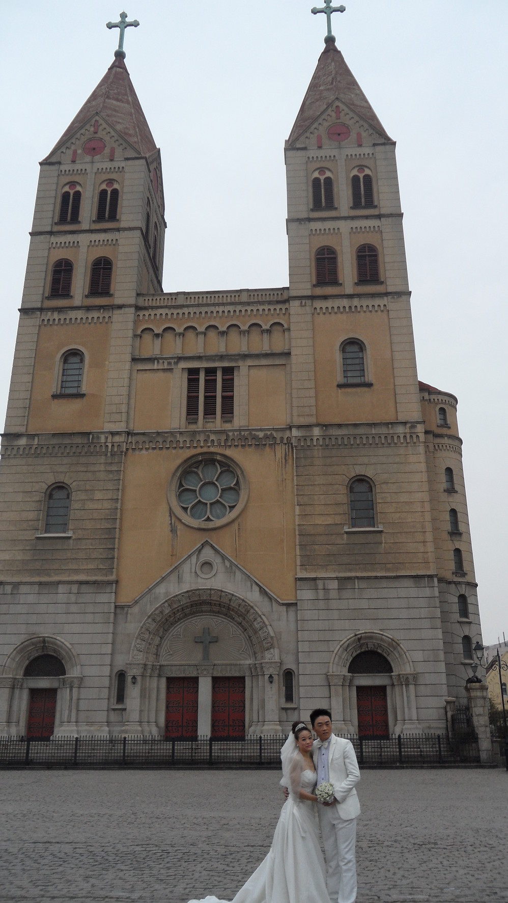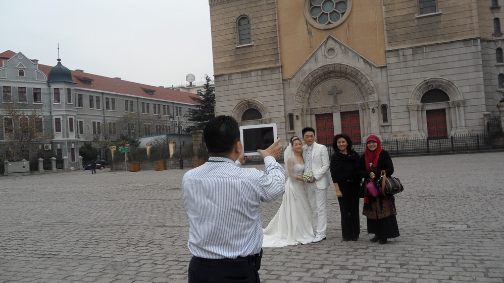 穿上中的天主教堂。天太冷,且在整修,所以只有很少的新人在拍照。