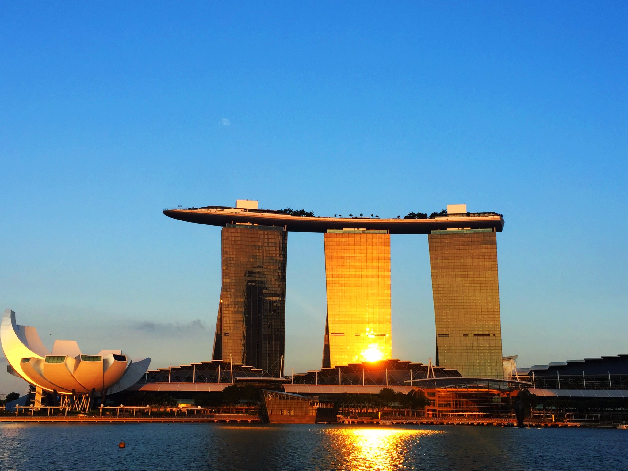 哦?大名鼎鼎的金沙酒店哦。在太阳的余晖显得金碧辉煌呢。