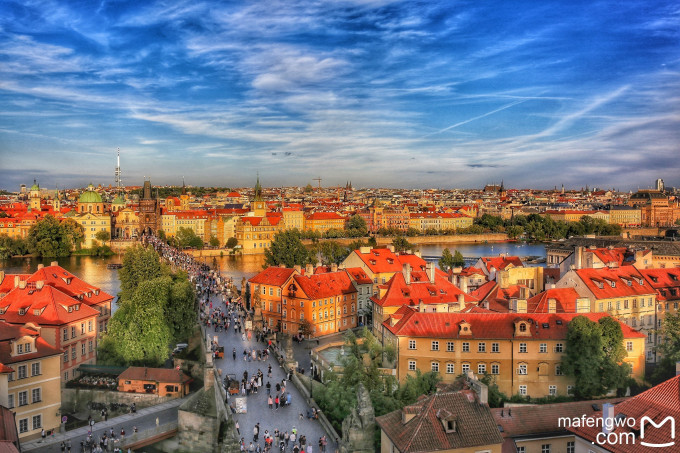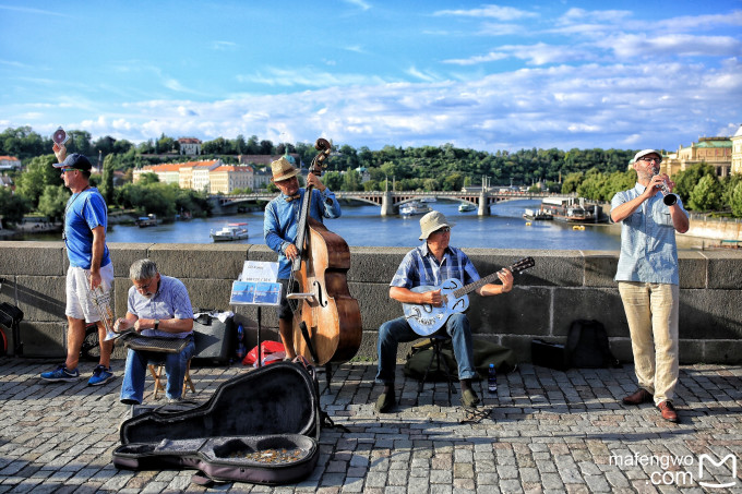 当然要先去查理大桥看看啦,都说没在查理大桥走上9次就不算来过布拉格,为了证明到此一游,是必须凑够啊。总觉得欧洲的夏天日落都很晚,时间将近六点,大太阳还高高挂在天上,查理大桥上人山人海啊,除了游人,还有很多艺人和商贩在两侧表演、卖东西。