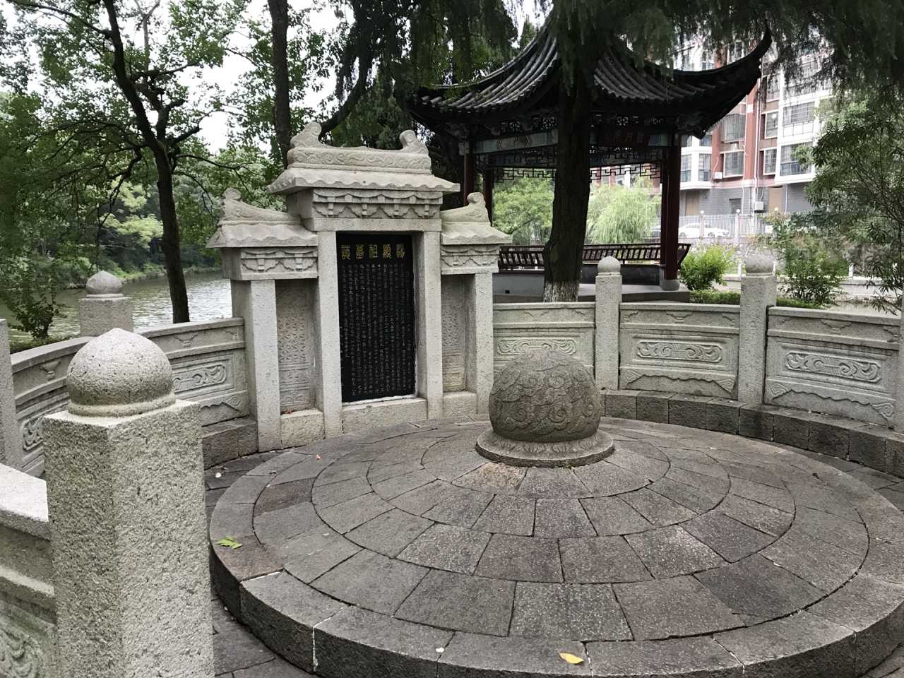 衣冠冢的造型颇为别致,“汤显祖之墓”五个大字是书法家舒同所书!最近的消息(8月份)汤墓的原址又被重新发现了,包括了42座明清墓葬,基本确定为汤显祖的家族墓,可惜现在正在封闭式整修,无法前往一窥究竟,不过相信经过整修后又会成为一处胜景!
