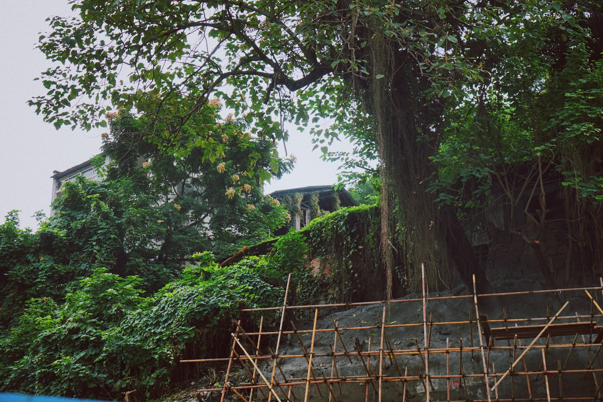 “拆”及“危险”等字样之间透着袅袅炊烟,某户人家做饭的香气顺着屋檐下小孩的嬉闹传过来,树影摇曳着,像是说着老重庆未结束的那些故事。