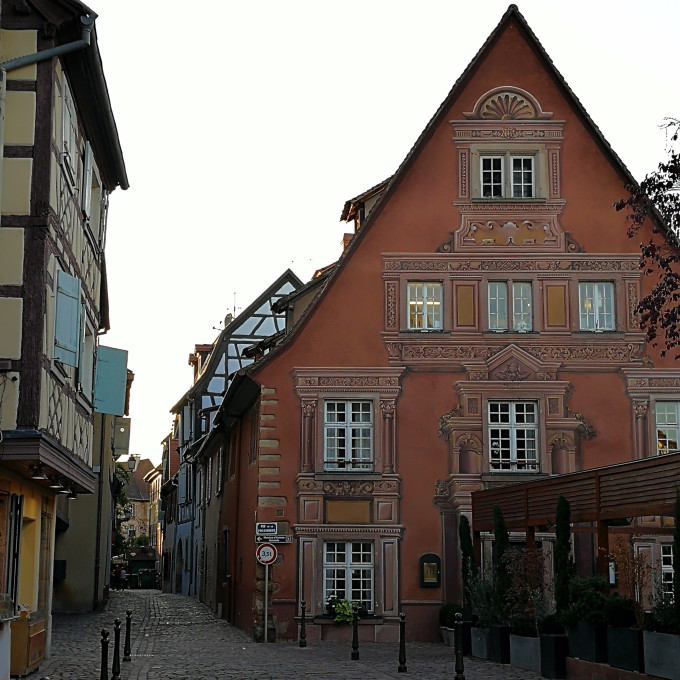 法国的阿尔萨斯地区,在过去的千年中,在德、法之间几经易手,阿尔萨斯的历史就是一部德、法矛盾的血泪史,是欧洲历史社会发展、融合的缩影。作为阿尔萨斯地区、上莱茵省首府的科尔马当然是随着地区的归属,在德、法之间变化。也正是因为此原因,科尔马镇很“德国化”,镇上保存着很多德式的“木筋房”。