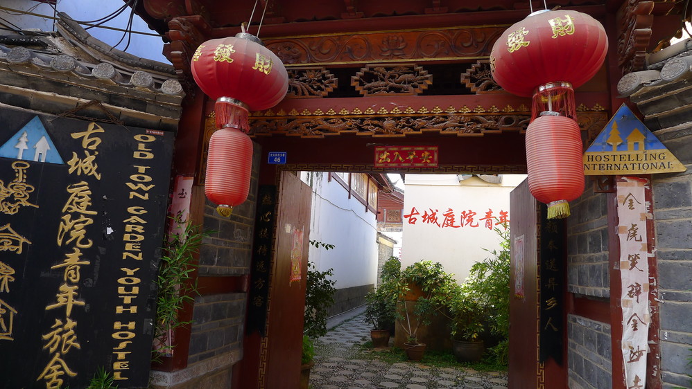 清晨的古城非常安静,偶尔有几个出来吃早餐的人,店铺都还没有开门营业,在寻找青旅的路上,我看了沿途的很多客栈,各有特色,价格不一。途中还遇到一个纳西族女子,一定拉着我去几个客栈看看,其实她是通过介绍人给客栈来拿提成的,不过最后我也没有选择她介绍的那几家。背着50L的大包,沿着七一街,一直走到了四方街,人顿时多起来。一路打听着来到了古城国际青年旅社 ,位置不错,紧邻四方街和五一街,住了8人间的一个床位,顺便办了一张会员卡,这一路准备都住青旅了。