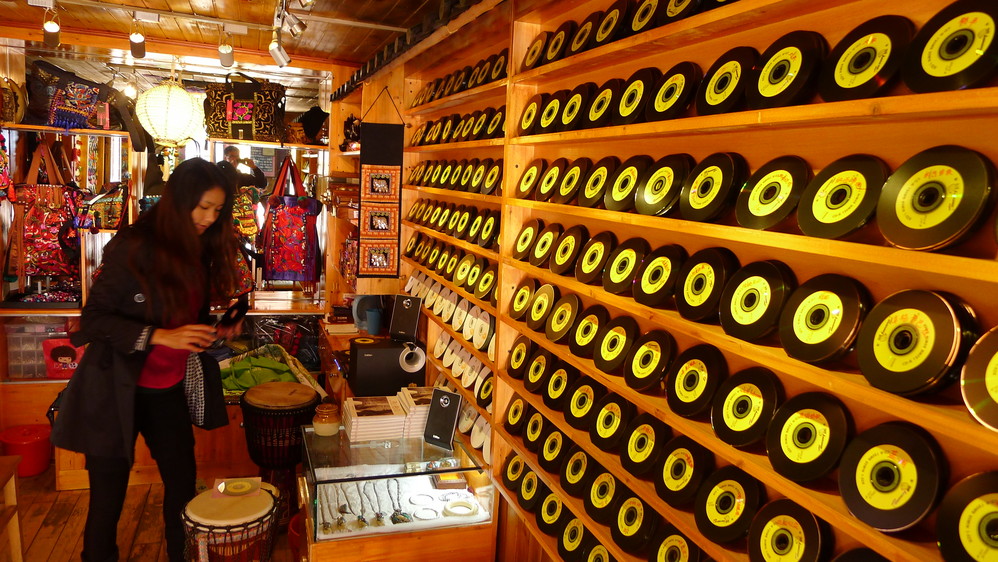 丽江 ,淘碟也是件快乐的事情。小小的店面里面,摆满了丽江 当地歌手原创的歌曲的带子,也有欧美的,这些歌曲大多数是丽江 知名酒吧歌手原创的,在网上很难找的到。坐在店里,挑选自己喜爱的声音,或者让店主教如何打手鼓 很有趣
