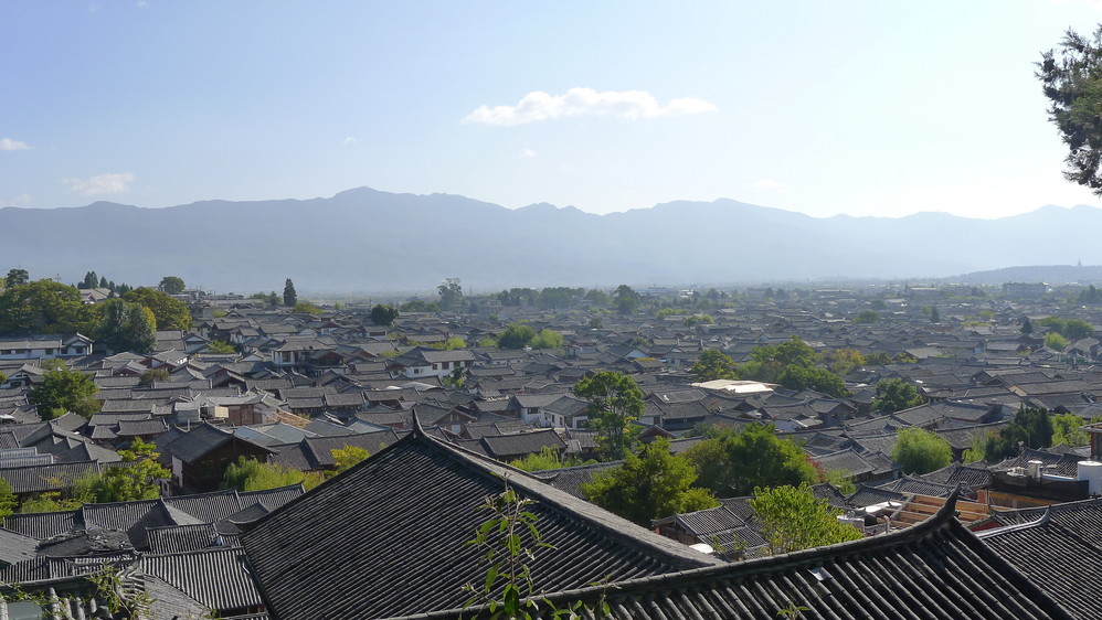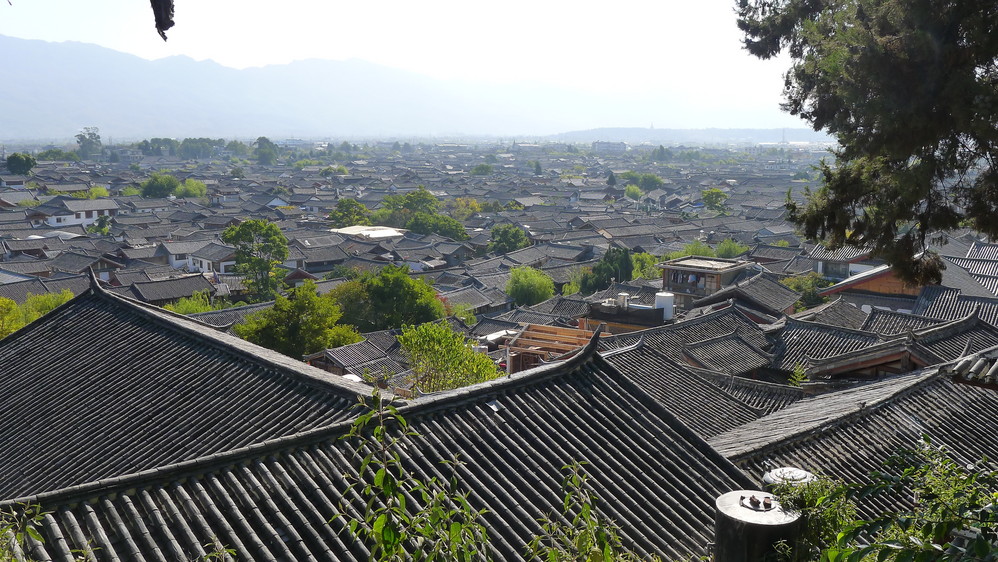 闲庭信步,看到有一条路通往高处,就径直往上走,原来这里就是丽江 古城的最高点---狮子 山,在这里可以看到古城全貌。