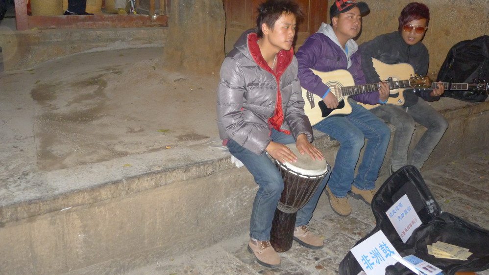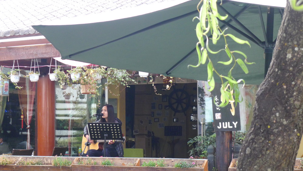 后来又在阿拉丁客栈的小酒吧坐了一会儿,等蜜蜂她们回来商议包车的事情,这个小酒吧人比较少,主要应该都是住在这里的客人,驻场歌手自己很少唱歌,一个劲儿的邀请顾客上台演唱,和KTV都差不多了。11多的时候,散了。我和布丁决定再在丽江 停留一天,后天再出发去虎跳峡 !