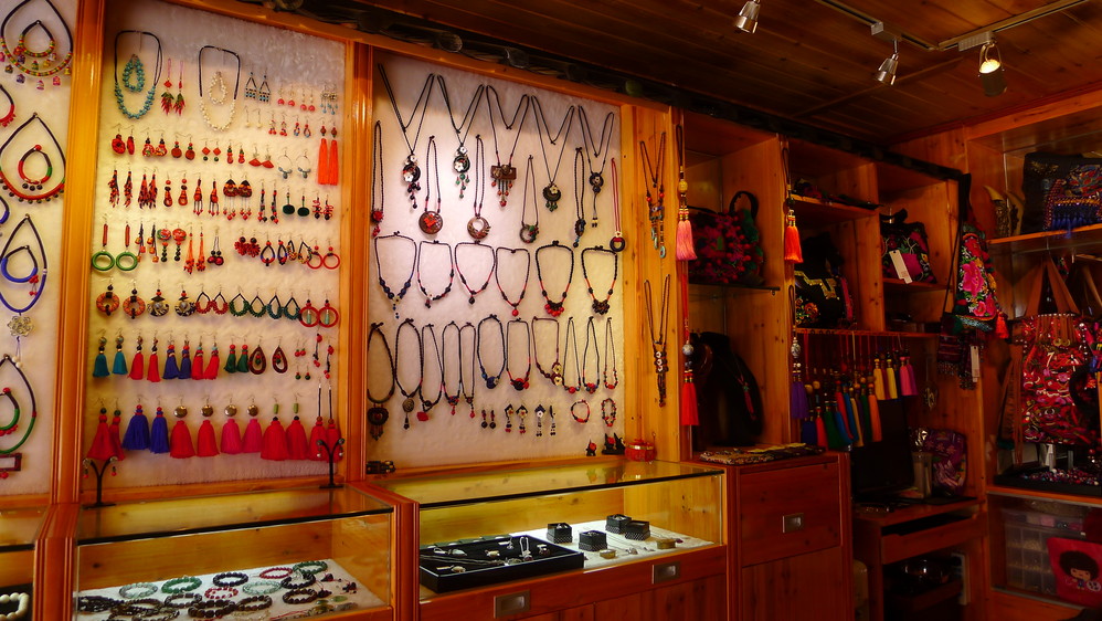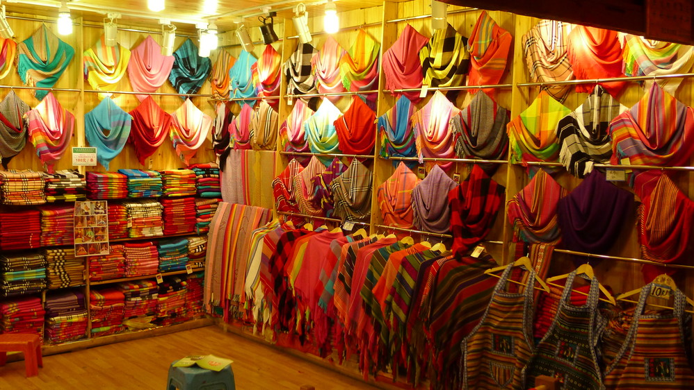 在青旅安顿好之后,出门闲逛,街上的店铺都开门营业了,五彩缤纷的披肩店,飘着清脆铃音的风铃店,工艺精巧的饰品店绵延不断的挤满古城的巷子,中间偶尔有一家淘碟店,里面传出侃侃的丽江 之隔------《嘀嗒》,偶尔有店主拍打手鼓的节奏穿插其中。