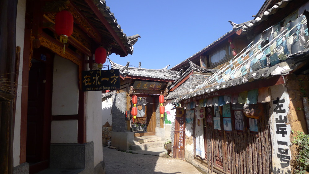 到了束河 古镇有些失望,因为这里和攻略上讲的是一处安静古镇不太一样,是个翻版的大研古镇,一样的建筑,一样的店铺,一样多的人,看来这里也是完全商业化的了。不过后来我发现我和其他驴友对这里的印象有一定的差异,在接下来的旅程中碰到的驴友都和我说束河 很安静,那估计是晚上才安静吧,因为大家都是白天来这里逛一逛,晚上都返回大研了。