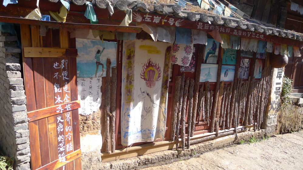 晚餐时QQ群里来自重庆 的布丁也赶到了,她和我一样是,时间比较充裕。吃过饭后就要决定下面的行程了。于是来到丽江 著名的阿拉丁户外俱乐部在大水车附近的客栈,详细咨询了去香格里拉 包车的价格和去虎跳峡 雨崩 徒步的情况。因为价格太贵,所以不考虑在阿拉丁包车了。