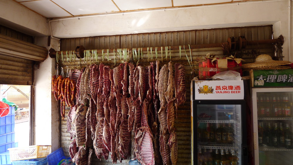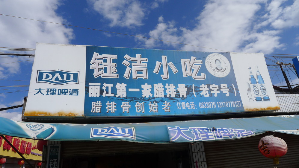 中午时分,和QQ群里面的Billy,旋风,蜜蜂等在关门口碰面,一起去吃丽江 著名的腊排骨。攻略上都推荐象山 市场的钰洁腊排骨最为正宗,于是直奔钰洁,BiLLY带路,因为他嫌我们一步到丽江 ,所以对这里还是比较熟悉的。到这里一看周围很多的腊排骨店,钰洁旁边还有一家著名的大佛腊排骨,据说还上过央视的旅游节目。