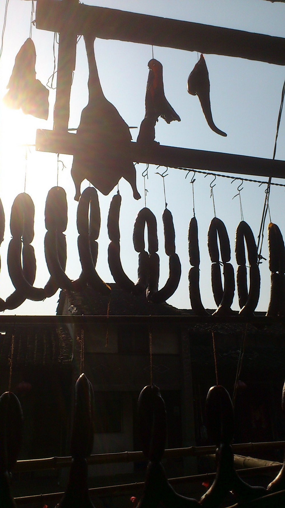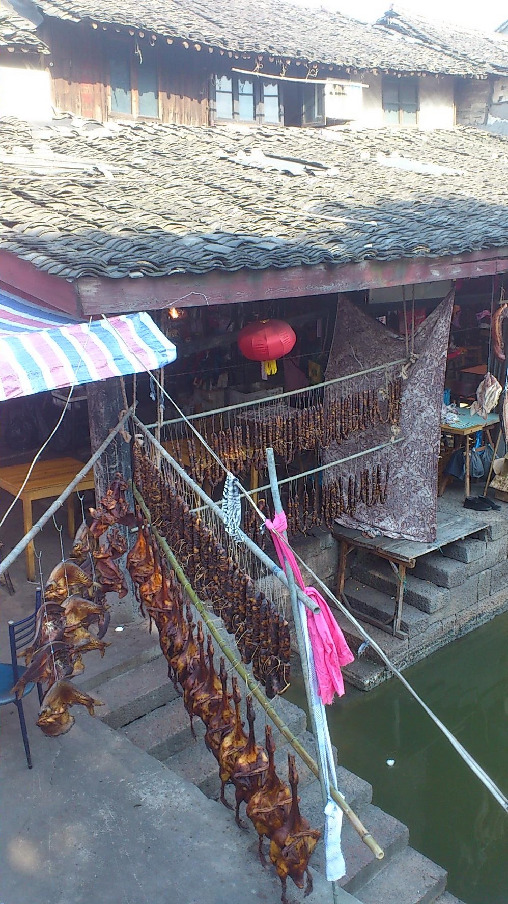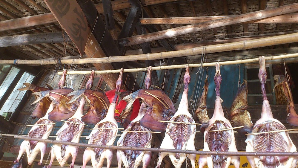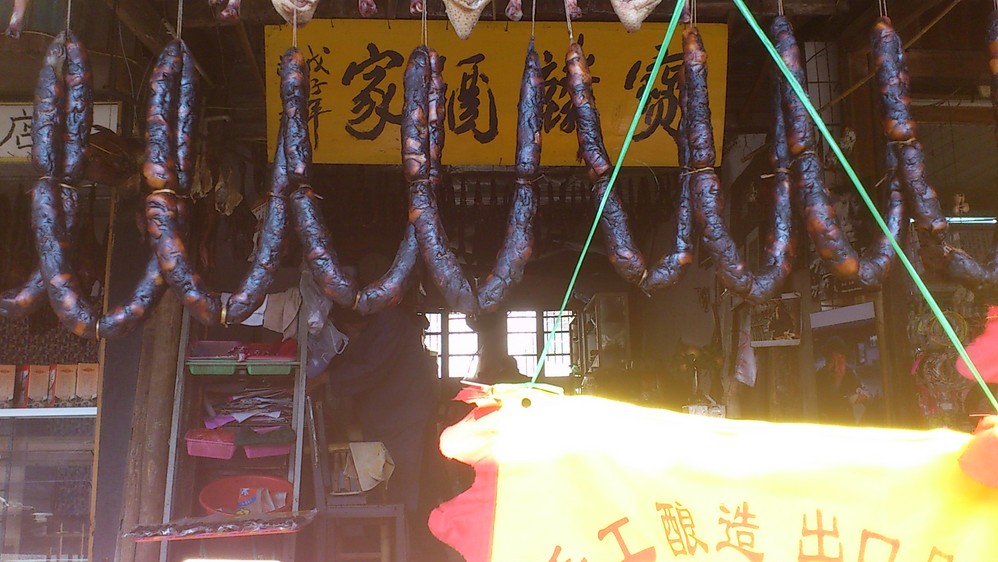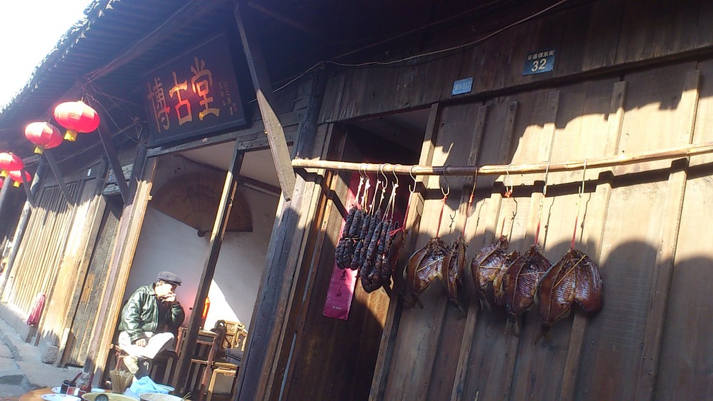 进入古镇了,对于挂着的那些鸭子和肠子很是好奇……
