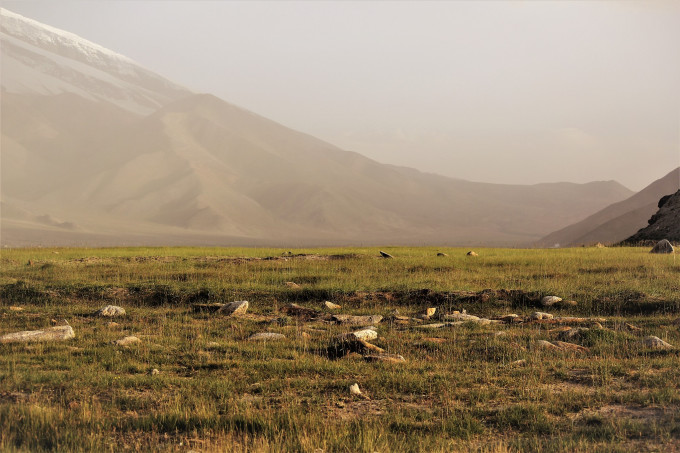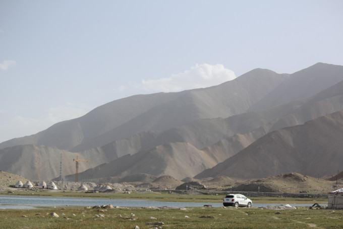 入夜,我们进在帐篷内歇息,从帐篷顶望出,天空浮云淡淡,星星点点。过了不到一个小时,只听见帐篷外风声渐起,不一会变得风声呼呼,水声哗哗。风声水声绵绵不绝,真有一种头枕着波涛的感觉。到了凌晨3点多,天空终于下起了大雨,帐篷的隔水效果不好,不一会,睡袋就有一种湿漉漉的感觉。大家只得起身收拾帐篷,躲进了车内。挨到天亮,草草洗漱完毕,与牧民告别,驱车前往我们下一个目的地----塔什库尔干。