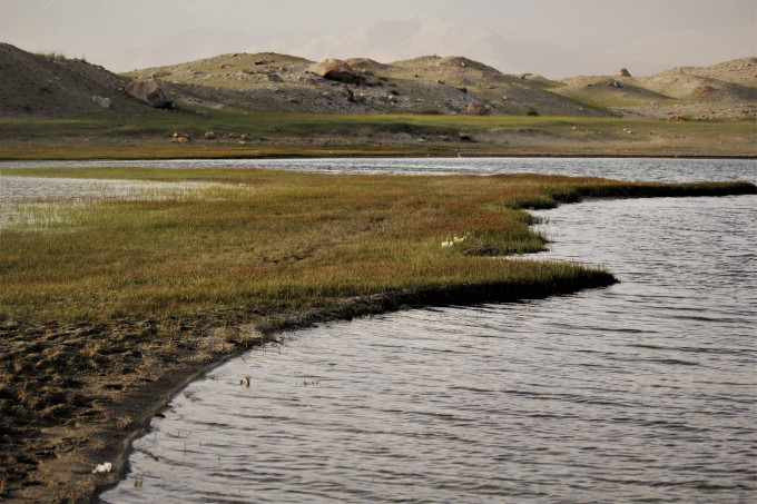吃完手抓饭,走出毡房,已是黄昏时分。黄昏的卡拉库里湖,一片宁静,湖水幽幽。远处的山峦笼罩在夕阳的余晖之下。慕士塔格峰巍峨壮观,夕阳将山峰染成金色。时节虽然还是盛夏,但这高原的湖泊却已是秋意盎然。卡拉库里湖湿地的水草,已呈黄色,在夕阳的映衬下,金秋的感觉甚浓。