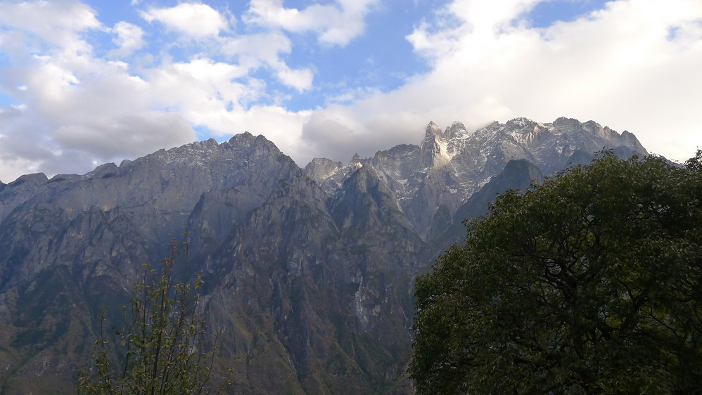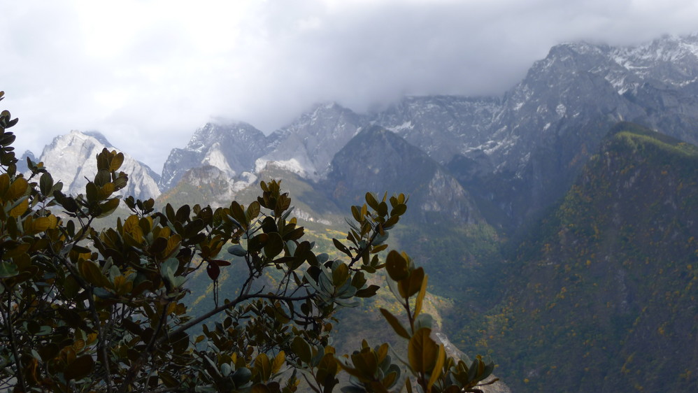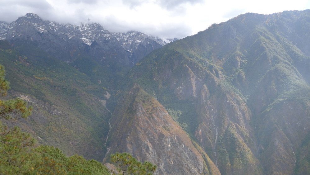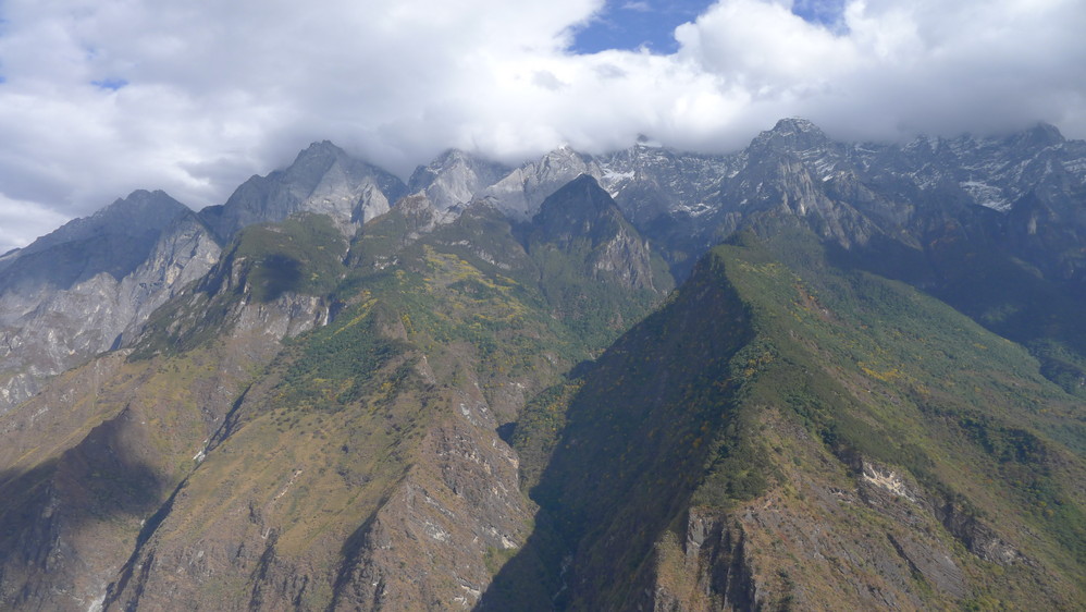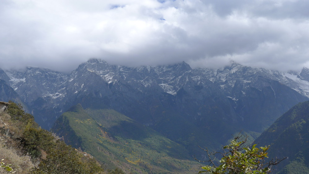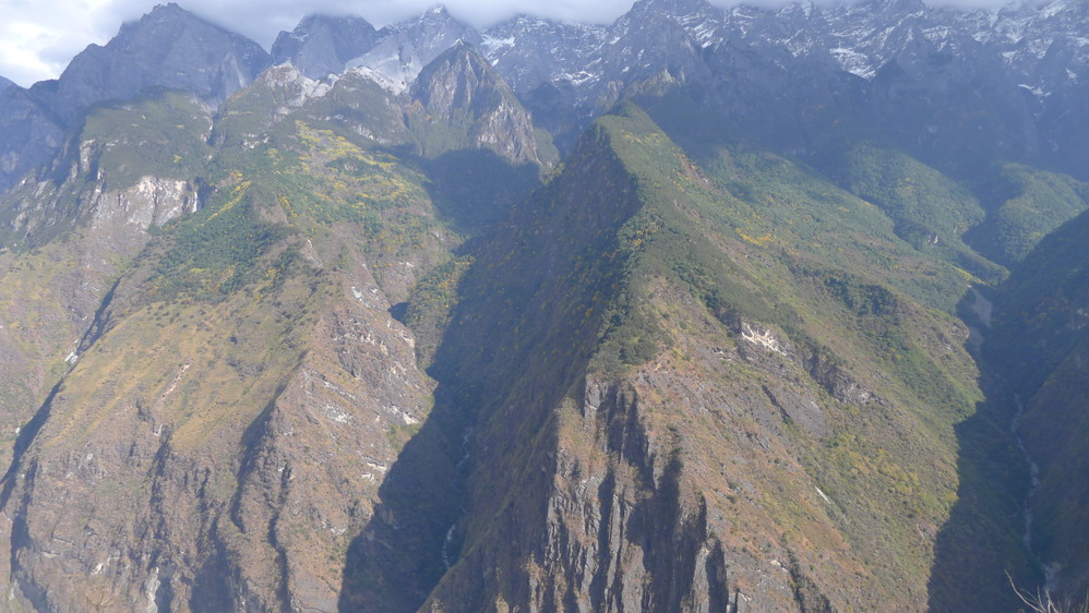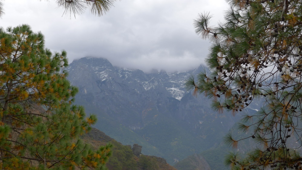 随着山路的延伸,感觉离玉龙雪山 越来越近,因为我们就走在悬崖边上,下面是奔腾远去的金沙江 ,对面就是玉龙雪山 !