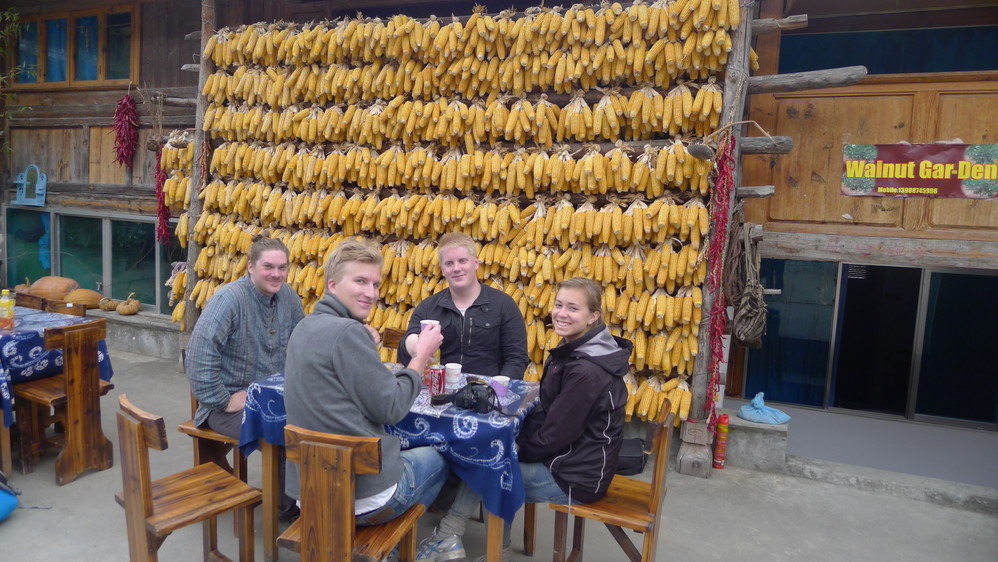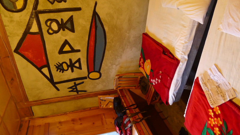 我们要了几个普通间,80元每晚,只有两个床,洗手间在地下一层,那个著名的天下第一厕所就在那里。和我们同车的老外们也在这里住宿,还有一队从广东 过来的,不过他们是从中虎跳往上虎跳走的,和我们方向相反。