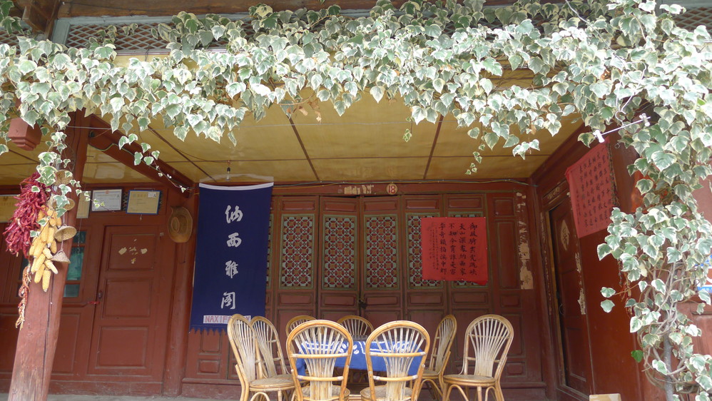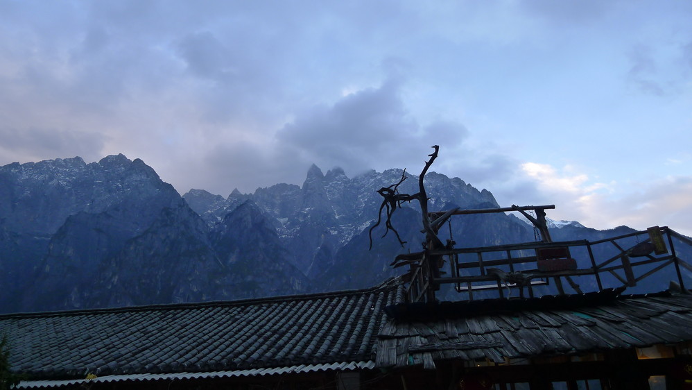 房顶的小天台 ,这里视野开阔,欣赏玉龙雪山 的好地方。
