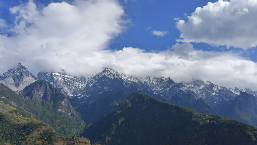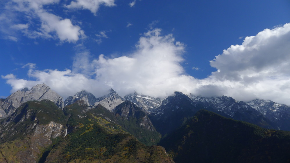 连绵起伏的玉龙雪山 山峰,雄伟壮观,我一路在不同位置不同角度拍了好多。